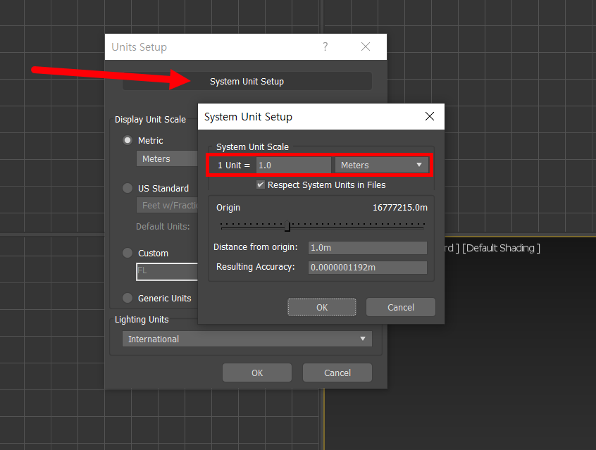 2)프로젝트의 유닛을 설정합니다. 예에서 미터(meters)로 설정하였습니다.