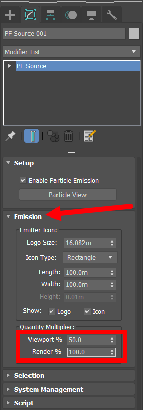 22)PF Source 오브젝트의 emission에서 quantity multiplier로 이동합니다.