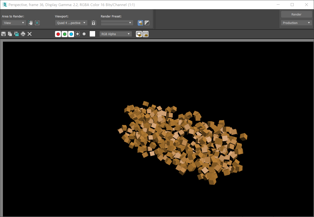 17)렌더링하면 3D 큐브 모양의 파티클을 확인할수있습니다.