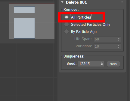 5)delete 연산자의 remove에서 all particles로 설정되어있는것을 확인할수있습니다.