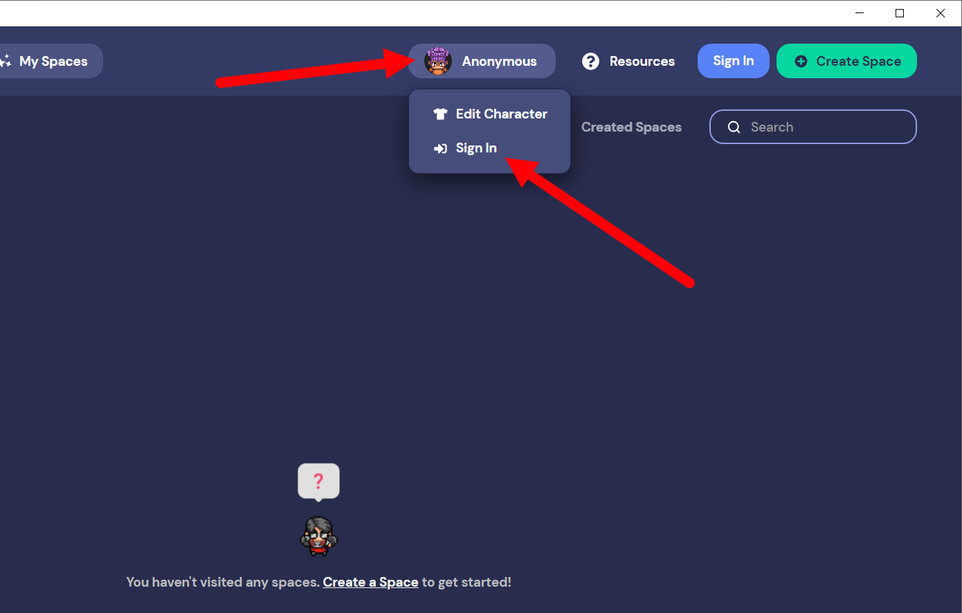 8)상단에서 임시 사용자명(anonymous)을 확인할수있습니다. sign in으로 이동합니다.