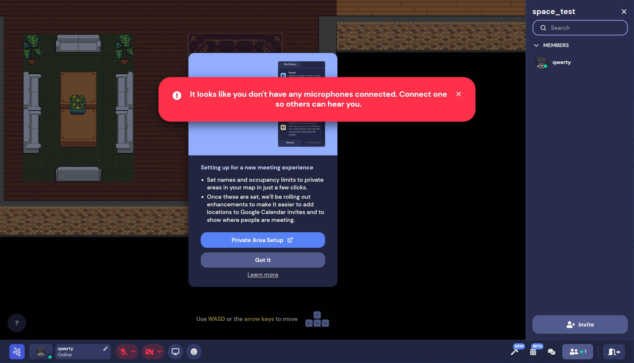 8)새로운 공간을 생성하며 공간에 입장한것을 확인할수있습니다.