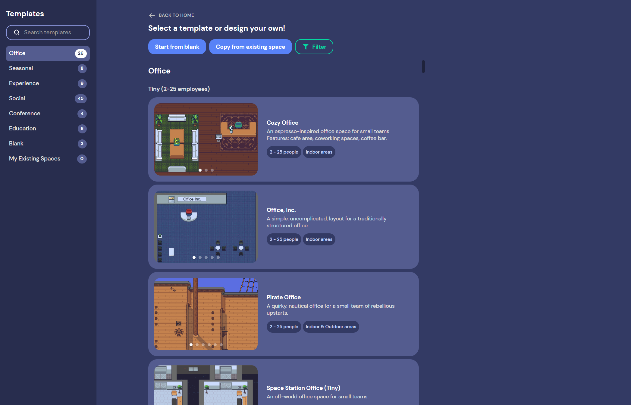 게더타운(Gather.town) - 템플릿(template) 선택하고 공간(space) 만들기