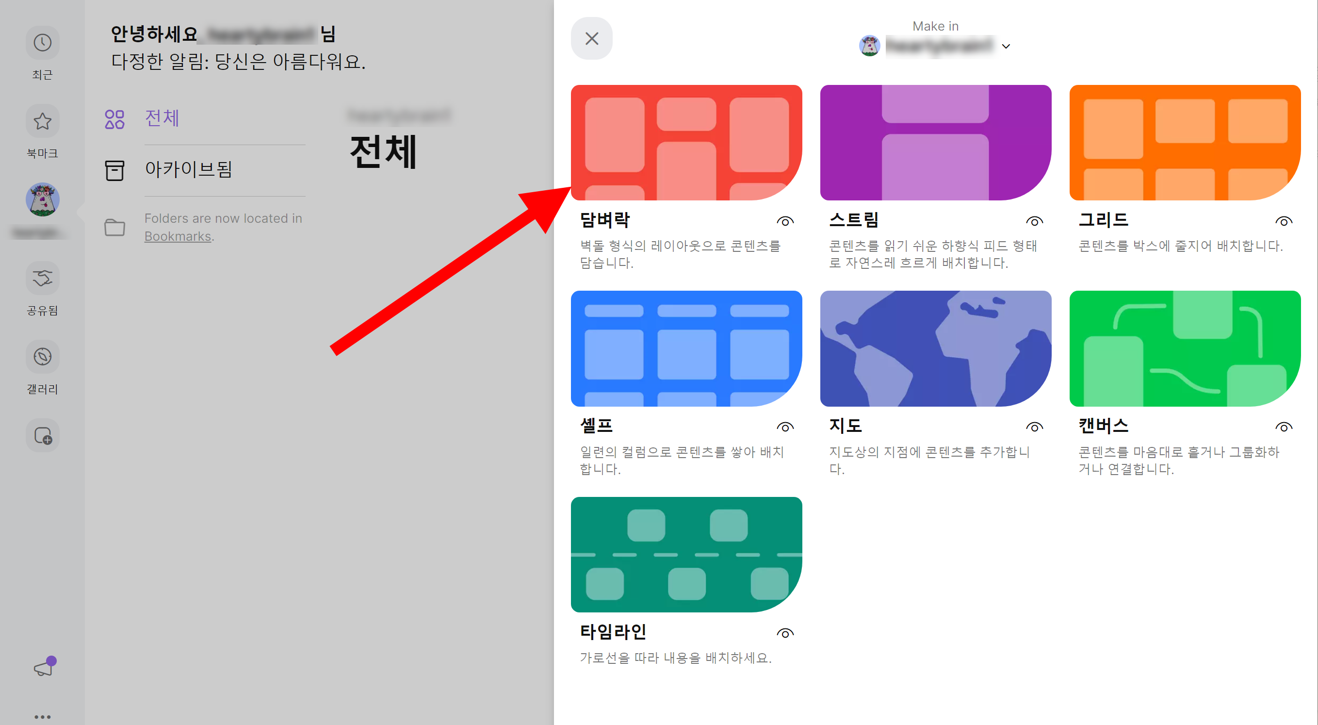 3)패들렛의 레이아웃 및 디자인을 선택합니다.