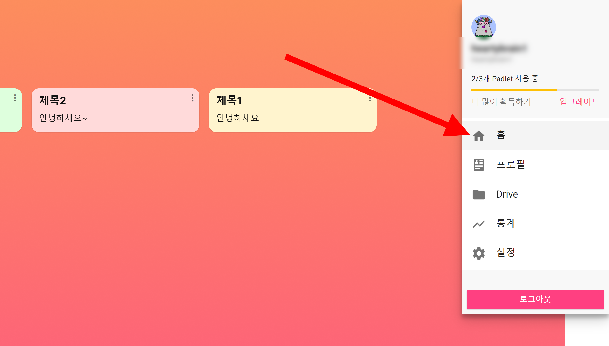 1)패들렛 웹사이트에서 사용자 로그인합니다.