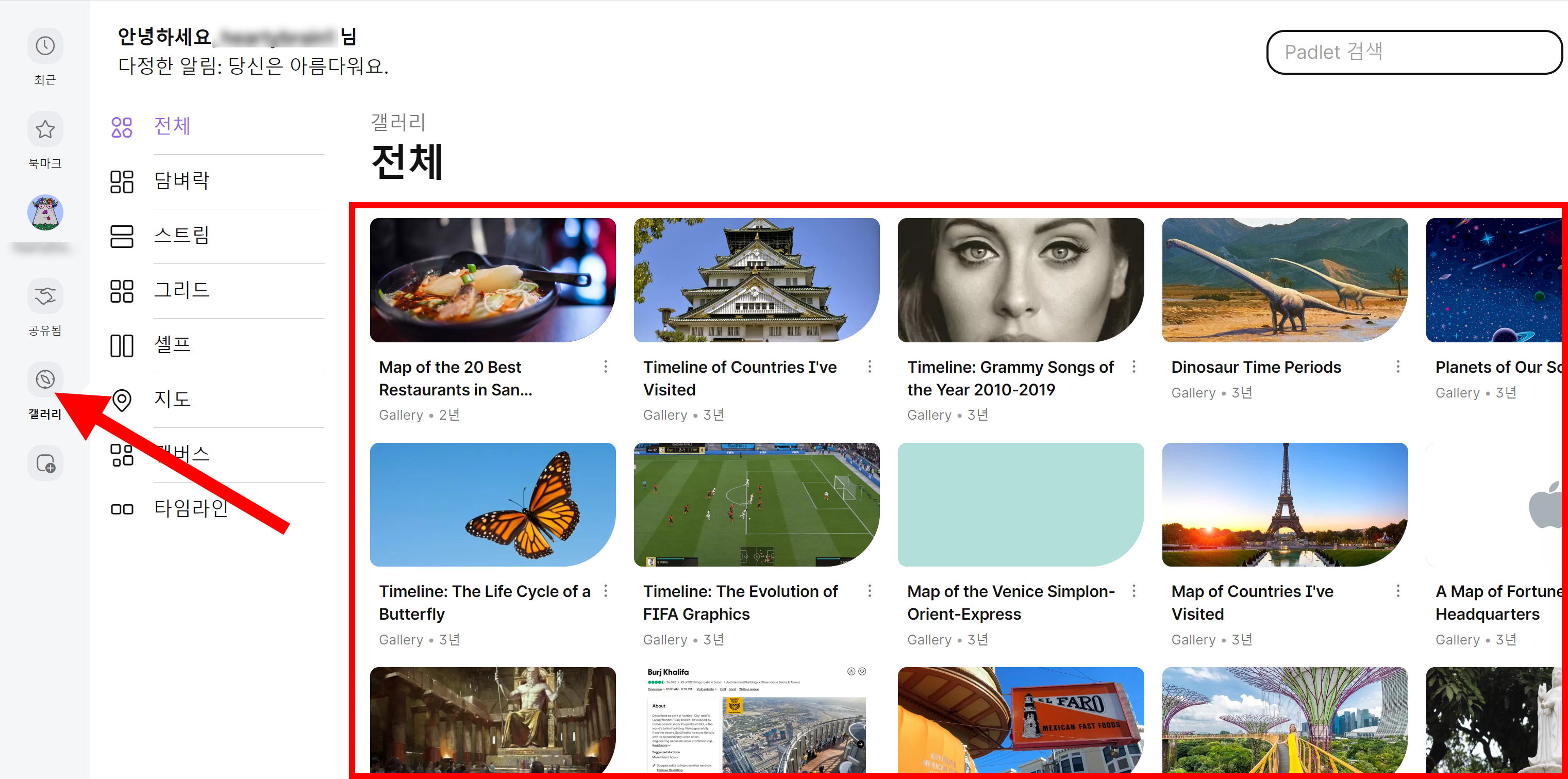 15)대시보드에서 생성한 패들렛을 확인할수있습니다.