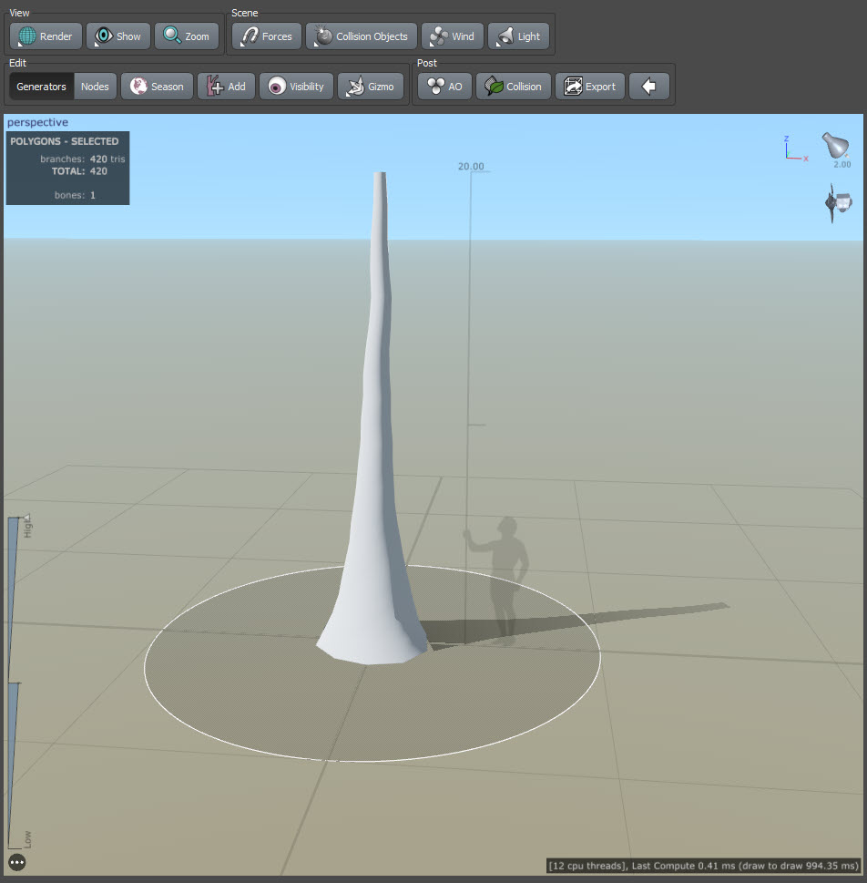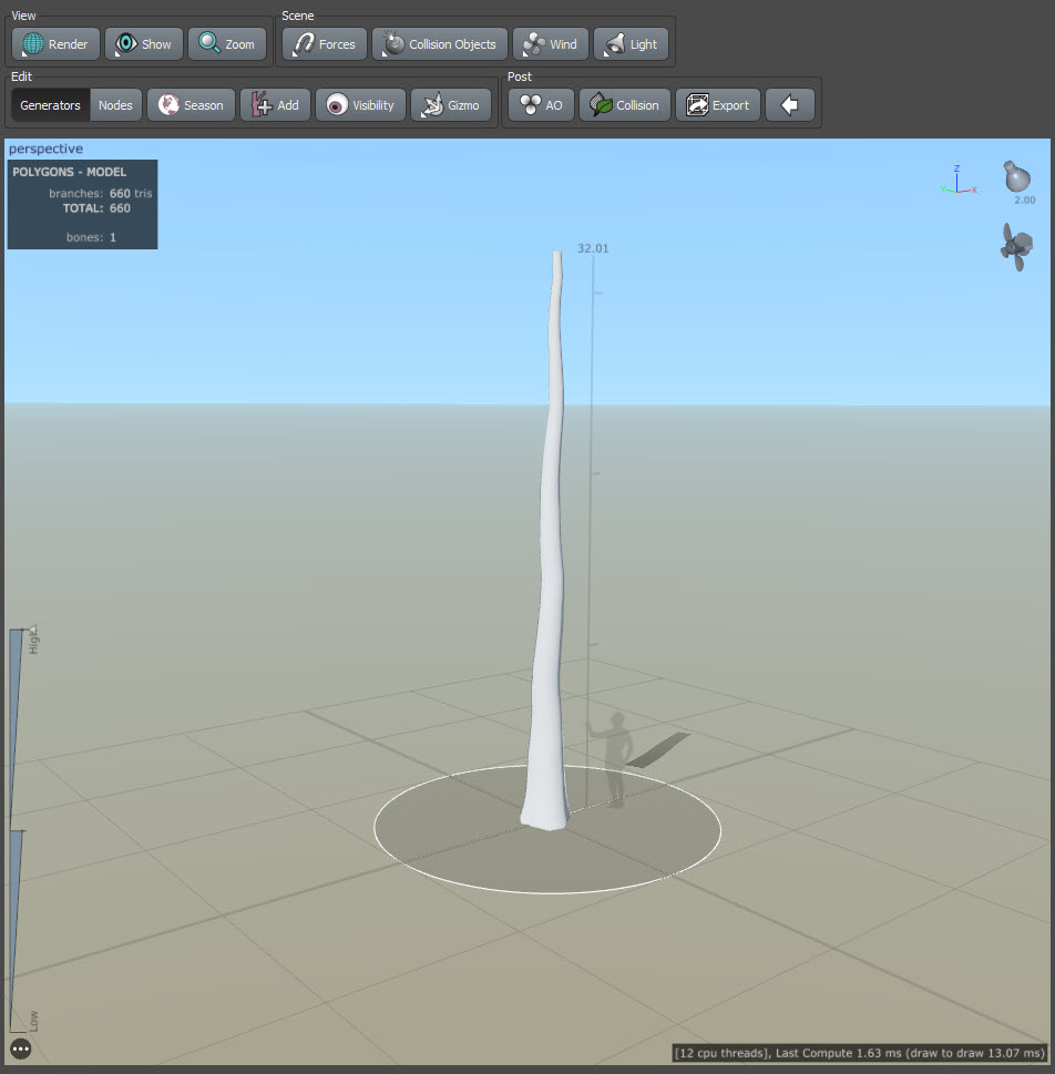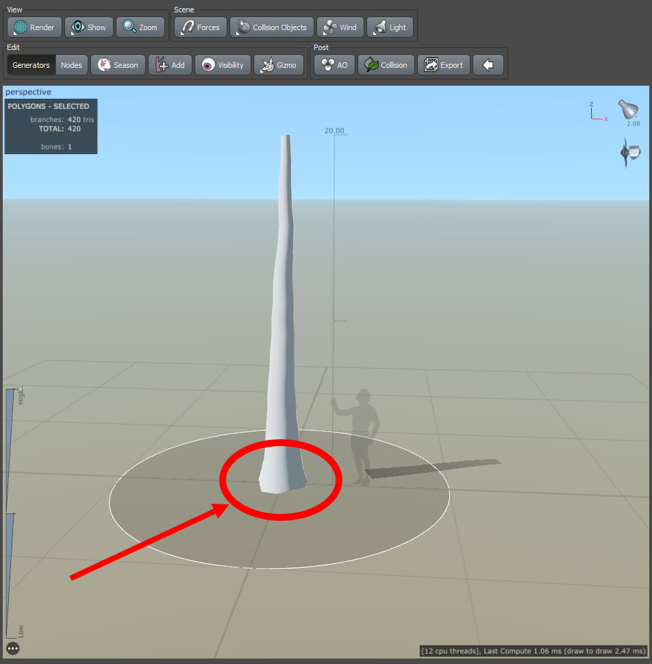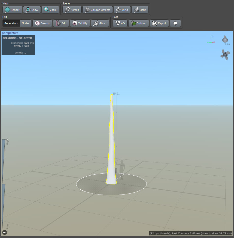 스피드트리(speedtree)에서 나무 모델링하기 - 나무의 줄기 만들기(trunk)