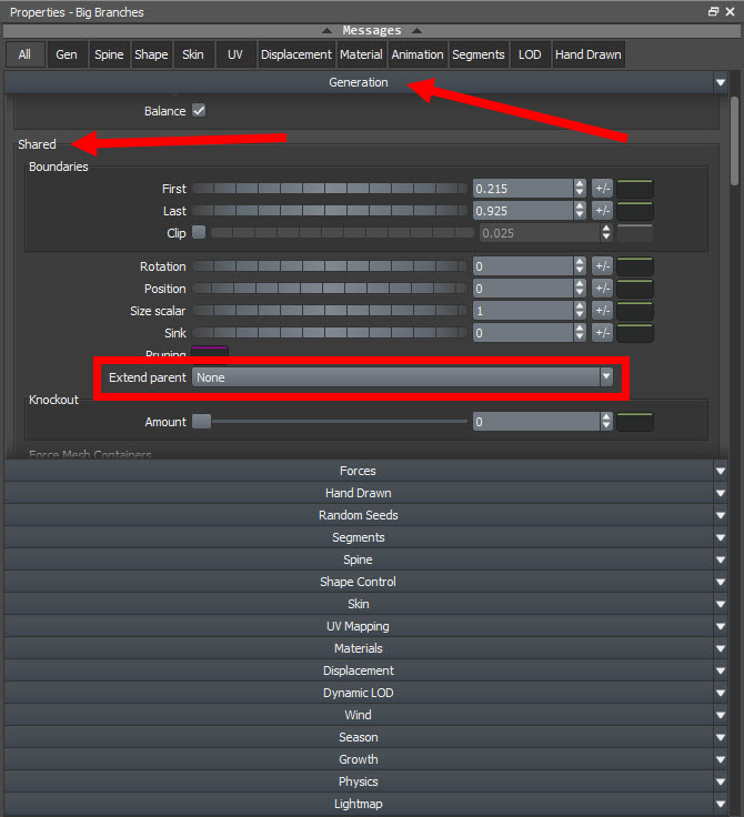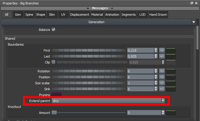 3)속성 윈도우에서 generation의 shared로 이동합니다. extend parent가 none으로 설정되어있는것을 확인할수있습니다.