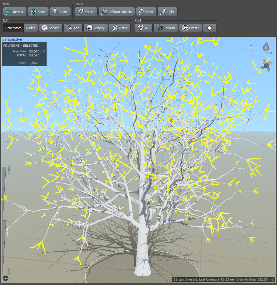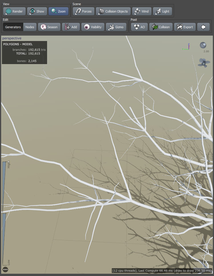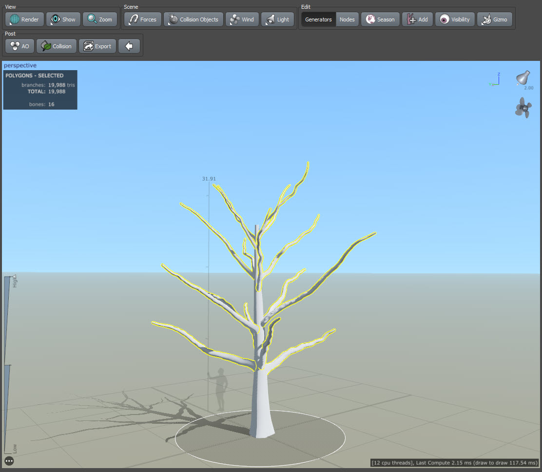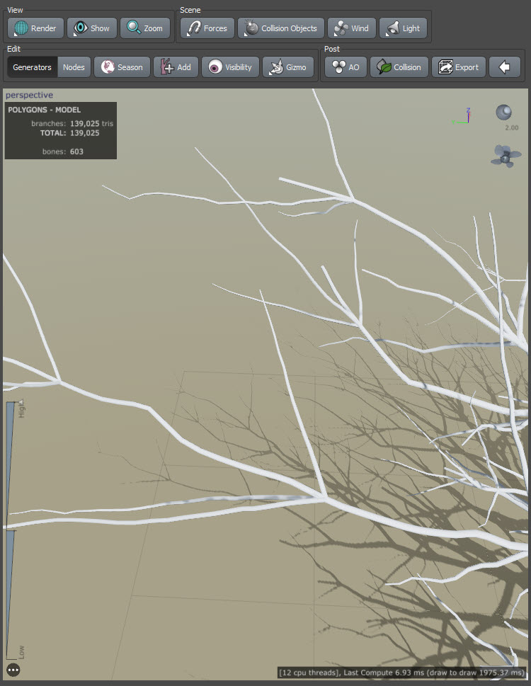 스피드트리(speedtree)에서 나무 모델링하기 - 나무줄기, 나뭇가지, 잔가지(trunk, branch, twigs)