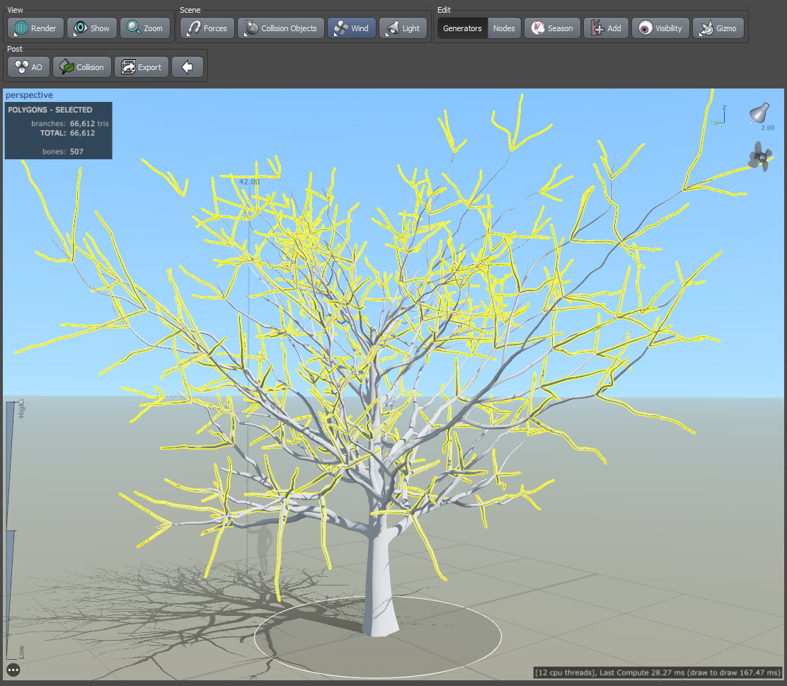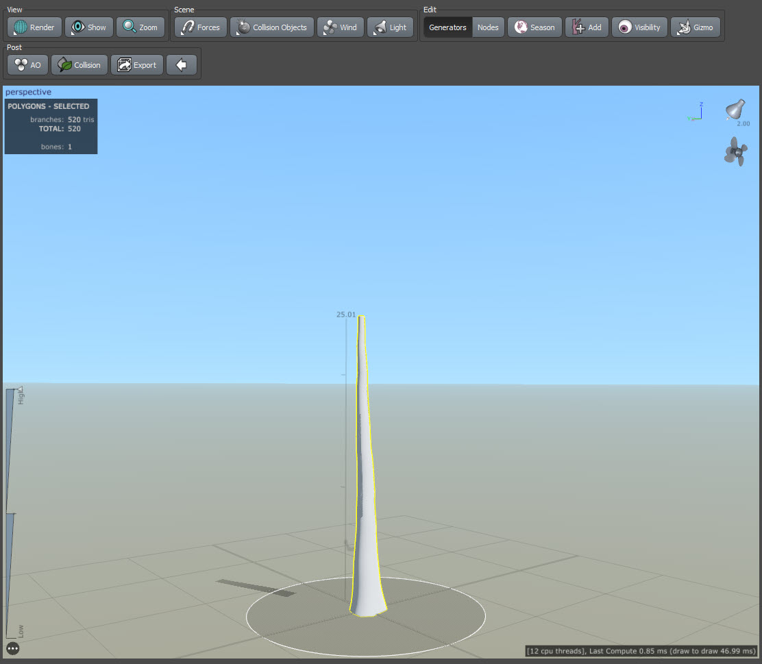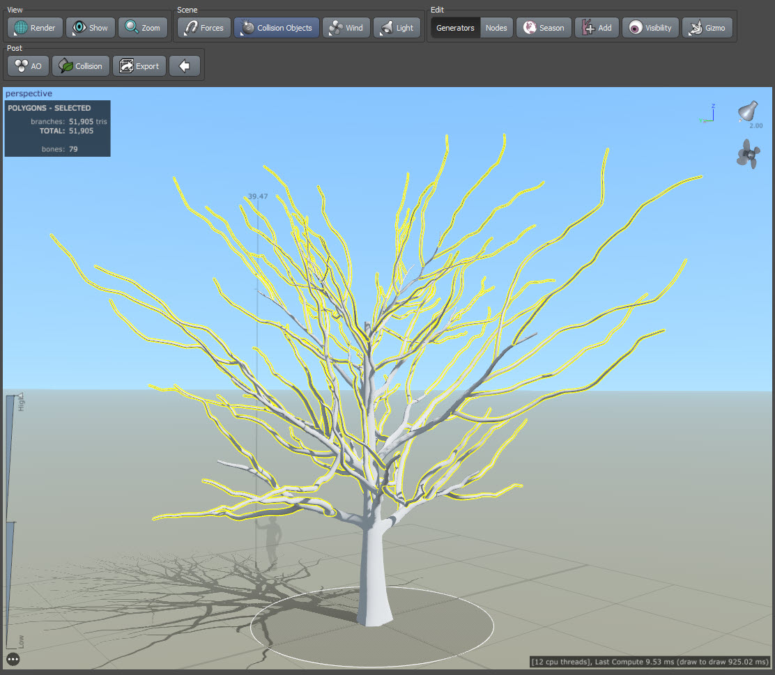스피드트리(speedtree)에서 나무 모델링하기 - 나무줄기, 나뭇가지, 잔가지(trunk, branch, twigs)