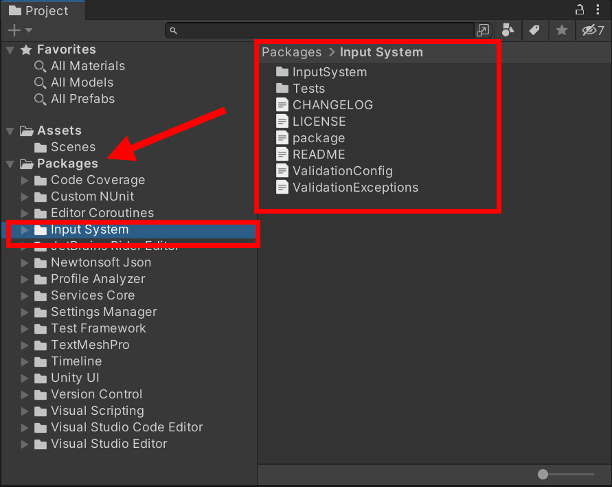 3)프로젝트 윈도으의 packages에서 새로운 입력 시스템이 설치된것을 확인할수있습니다.