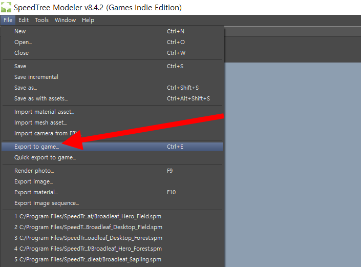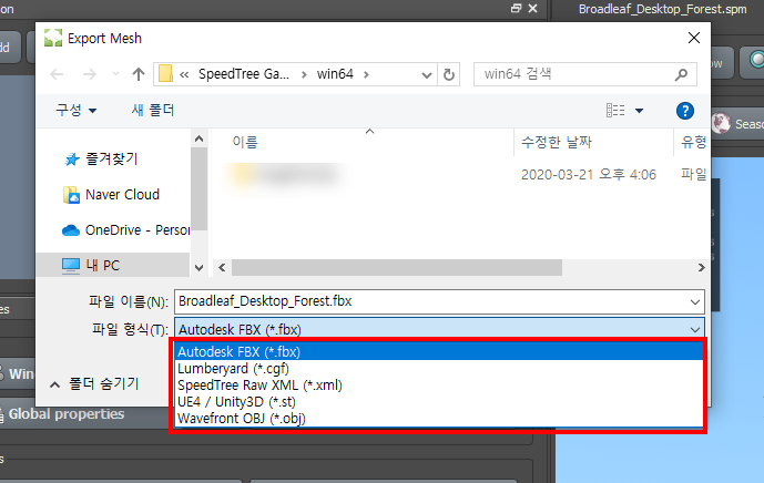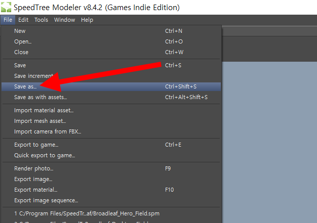 스피드트리(speedtree)에서 파일 저장 및 3D 모델 내보내기(Save, Export)
