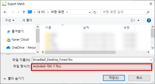 5)기본적으로 3D 모델의 메시(Mesh)를 fbx 형식으로 내보내기 할수있습니다.