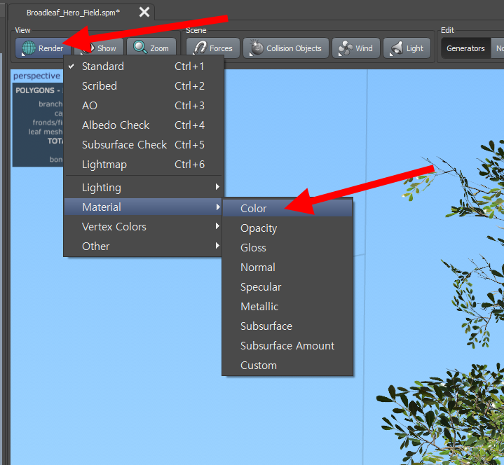 스피드트리(speedtree) 작업 성능 높이기(그림자비활성화, ao비활성화, color맵표시)