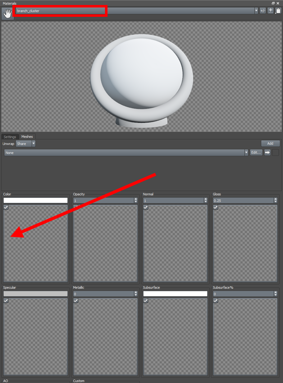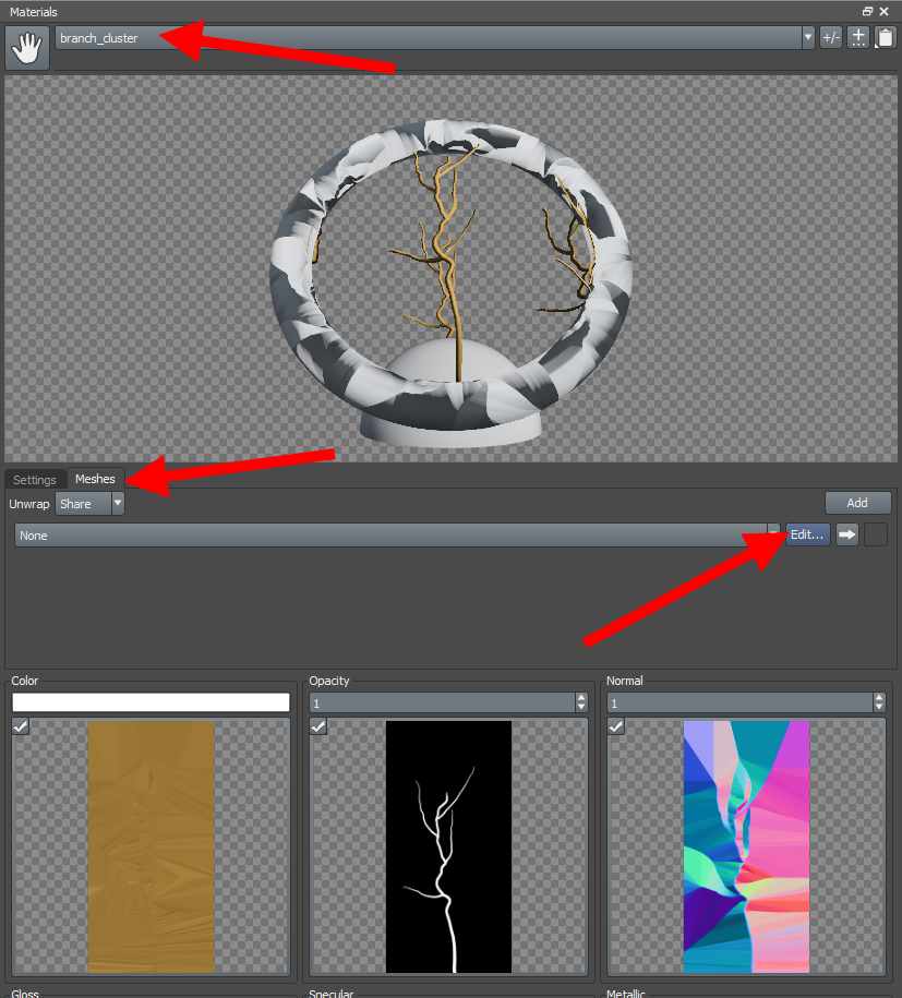 10)frond의 재질에서 meshes 탭의 edit으로 이동합니다.