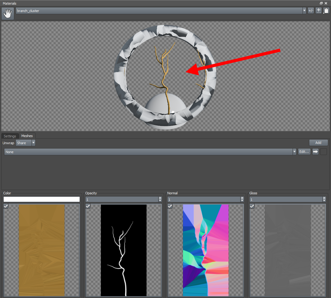 9)나뭇가지 텍스처를 설정합니다(cluster)