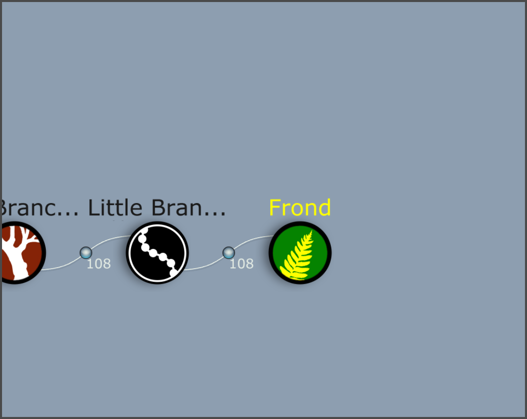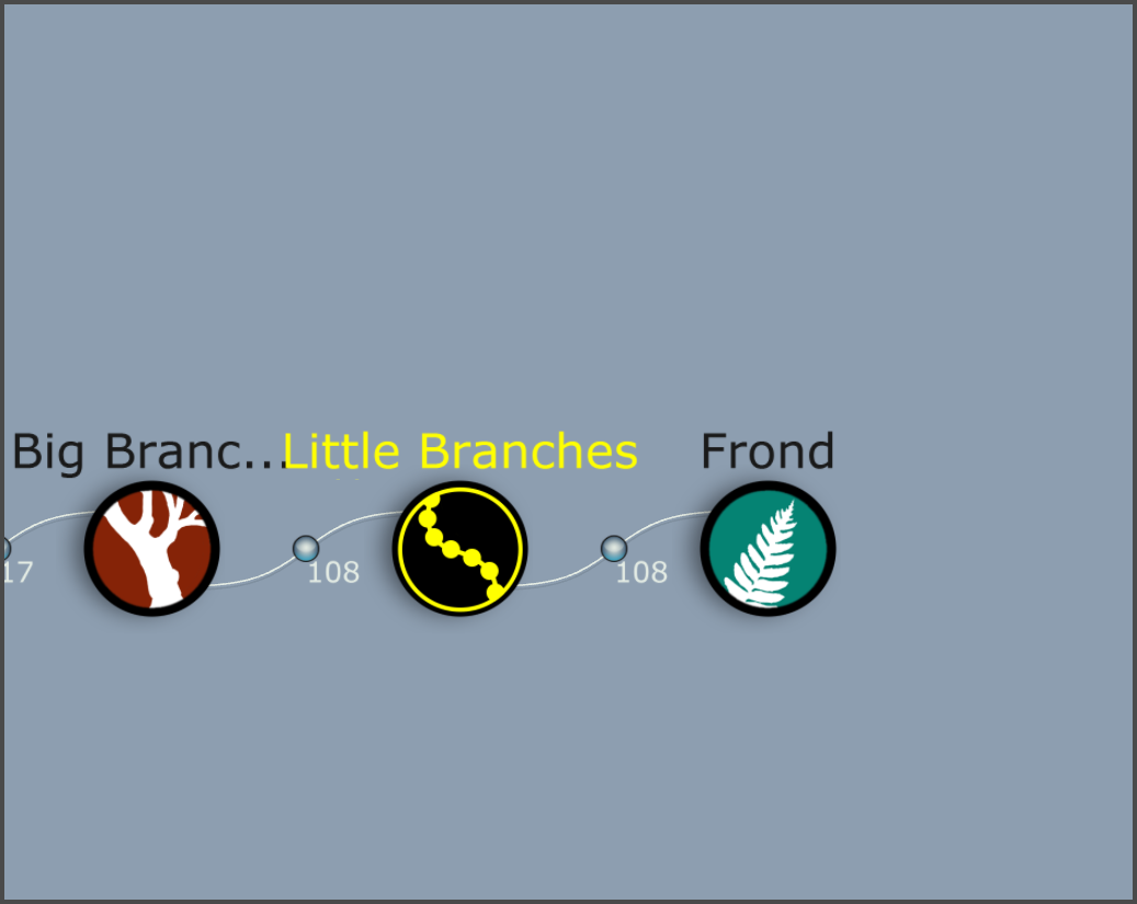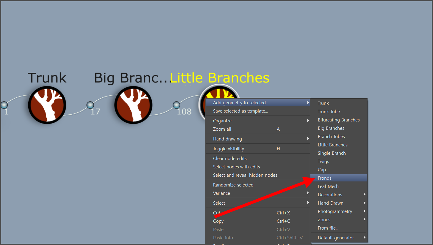 4)나뭇가지(little branches) 노드에 fronds 제너레이터를 추가합니다.