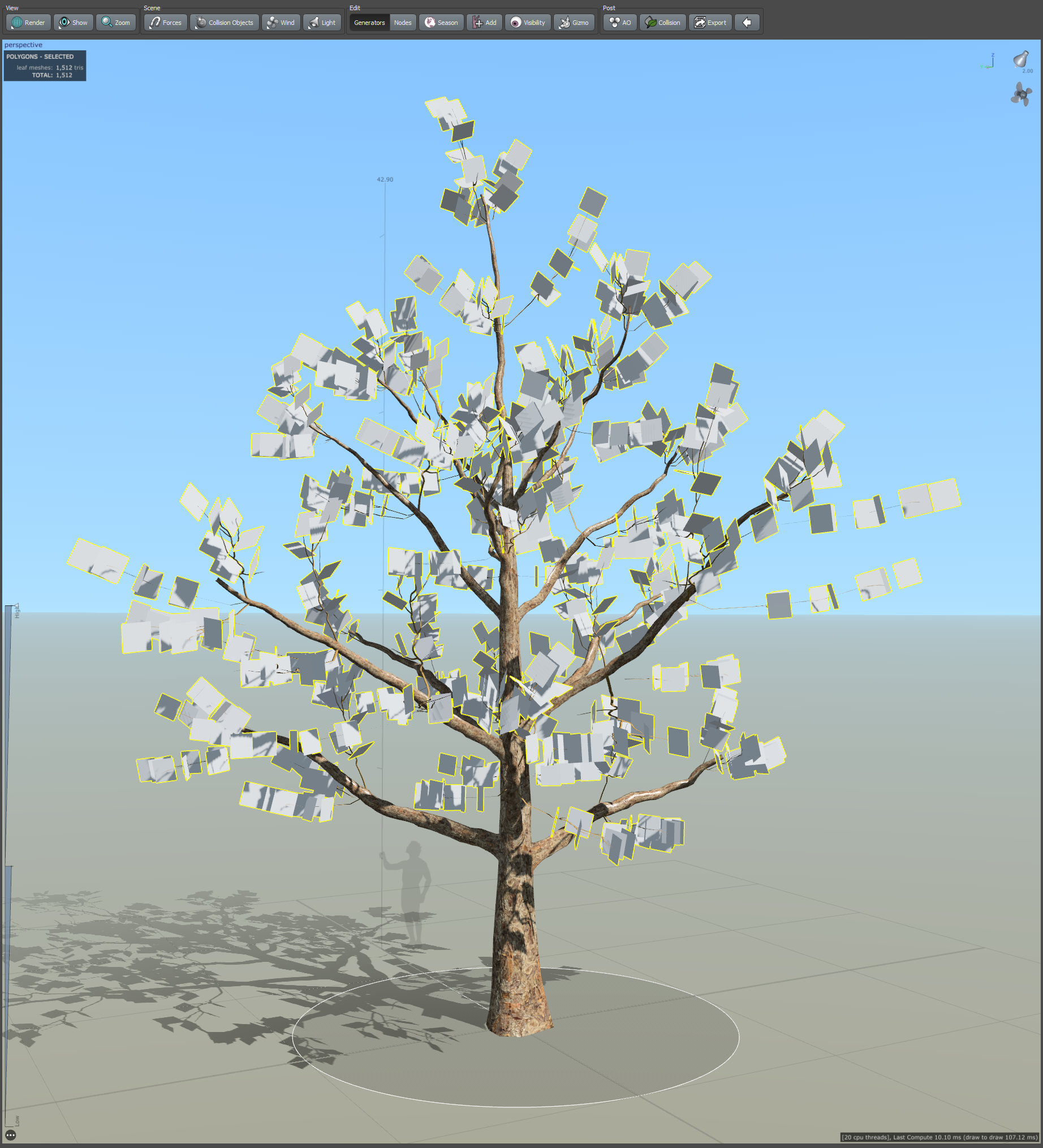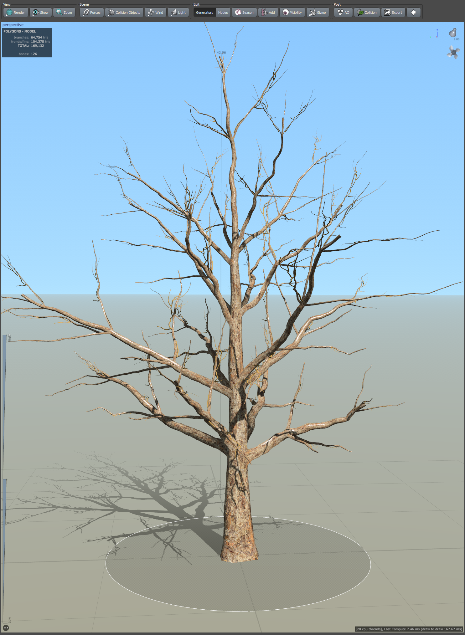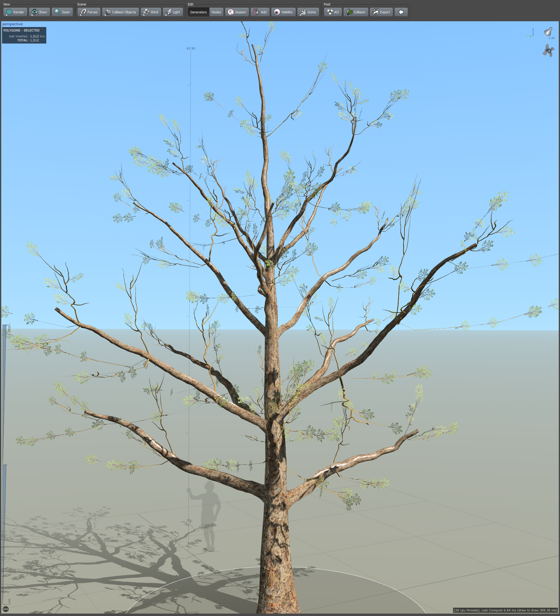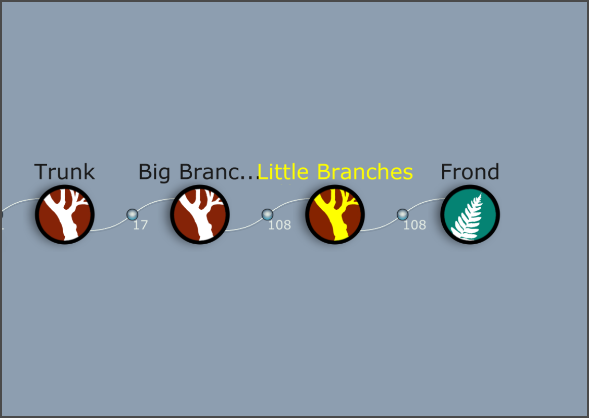 19)나무줄기의 나뭇가지에서 frond(나뭇가지 cluster)와 leaf mesh(나뭇잎 무리와 나뭇가지 cluster)가 추가된것을 확인할수있습니다.