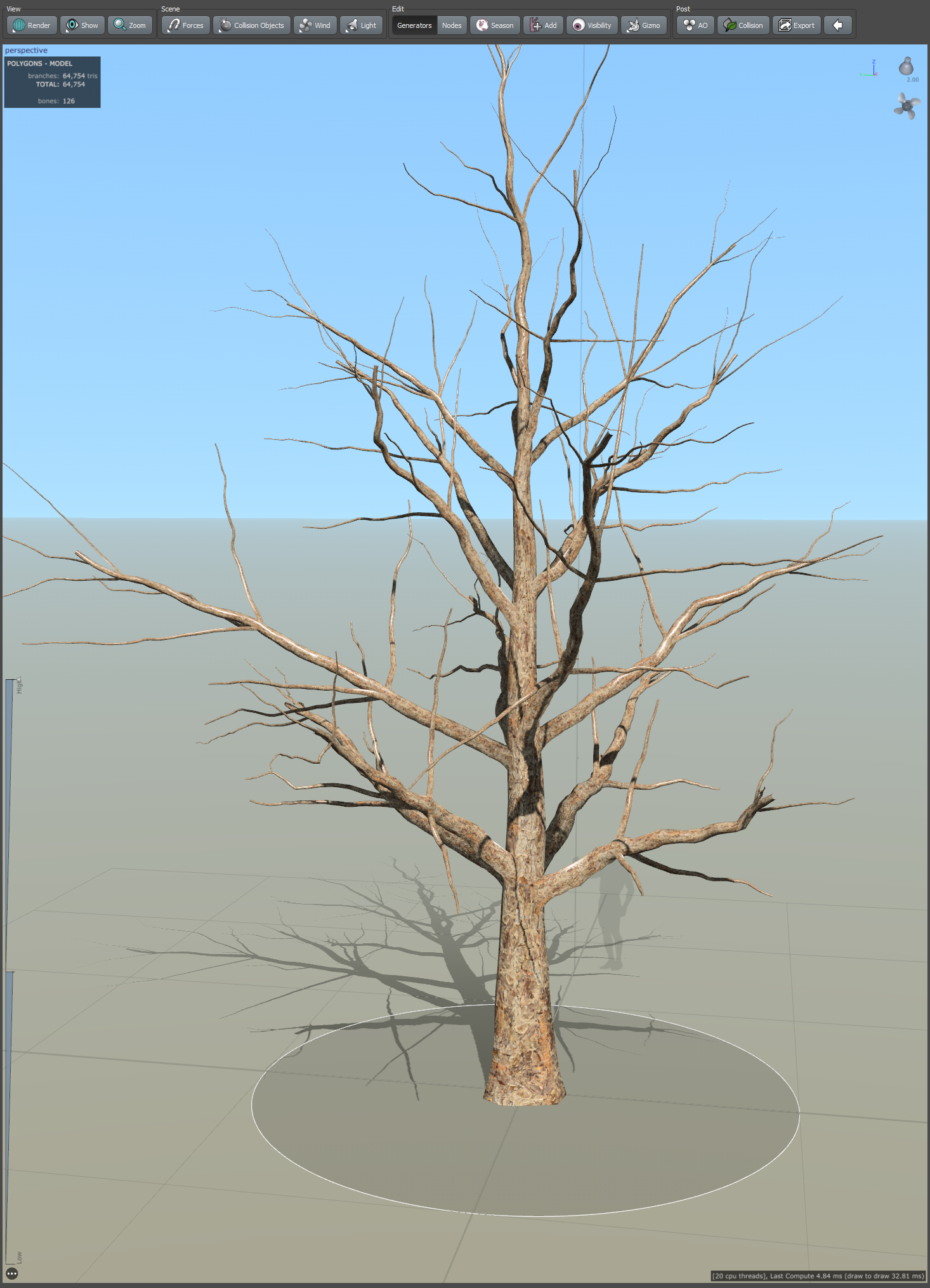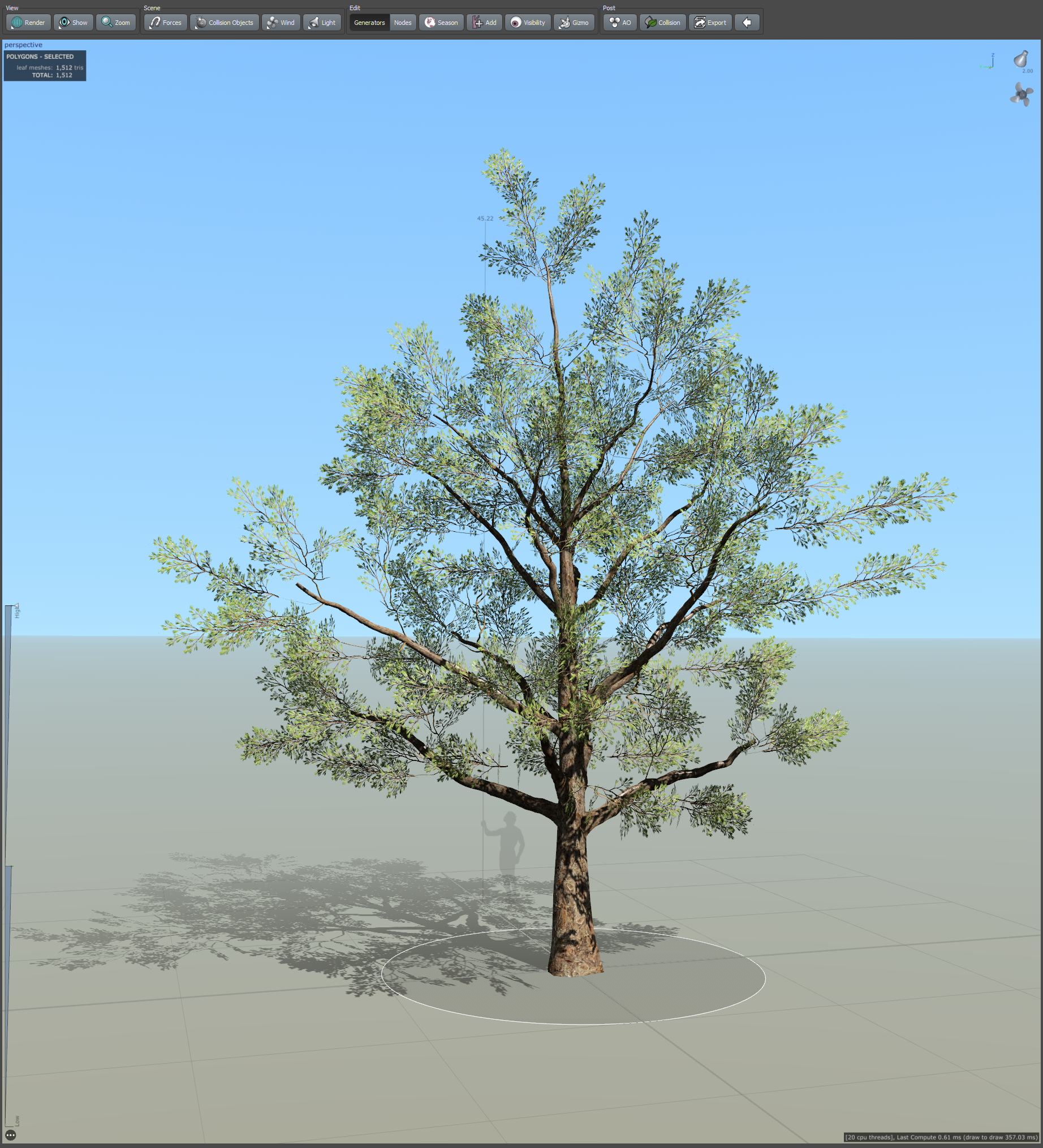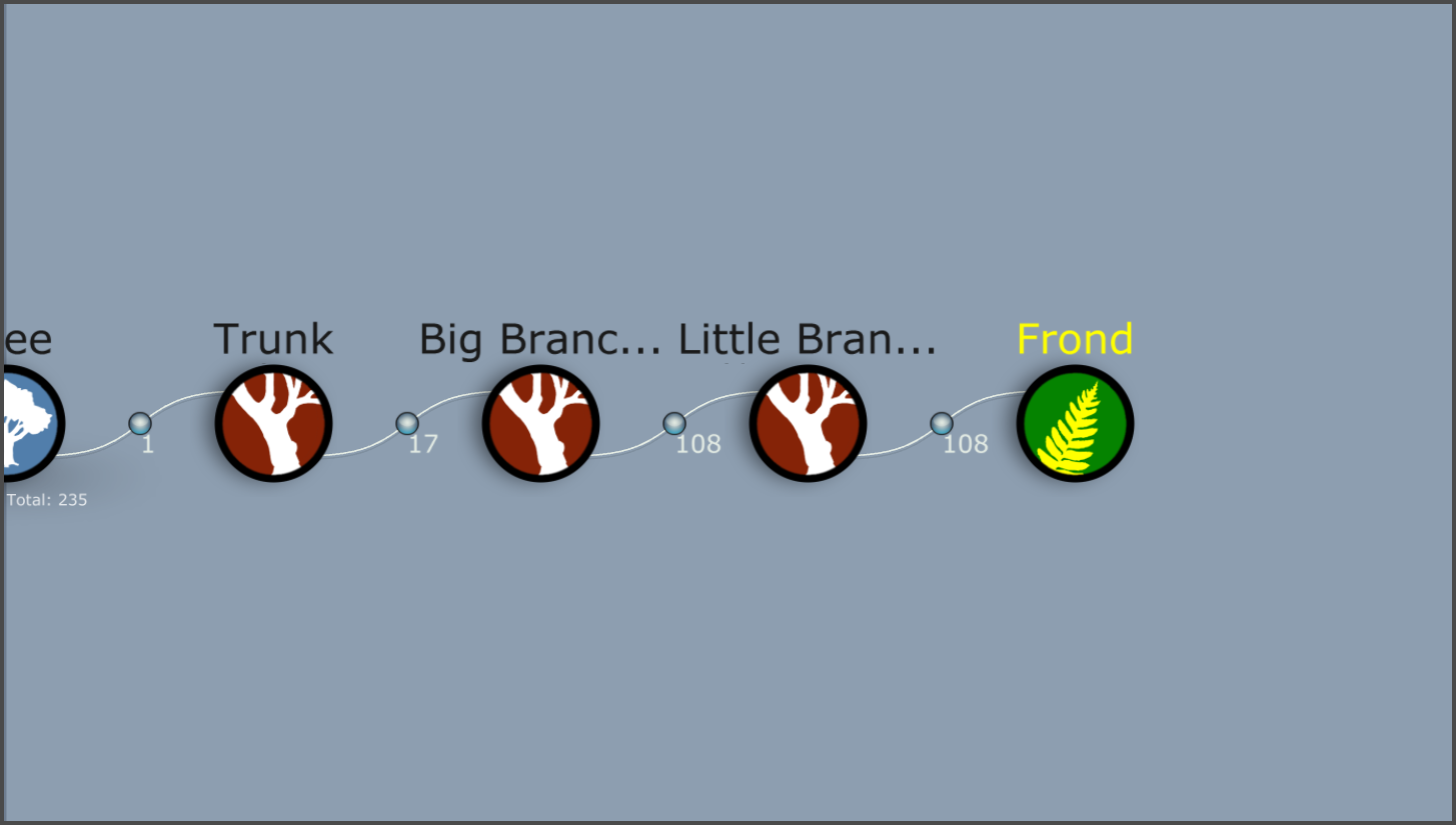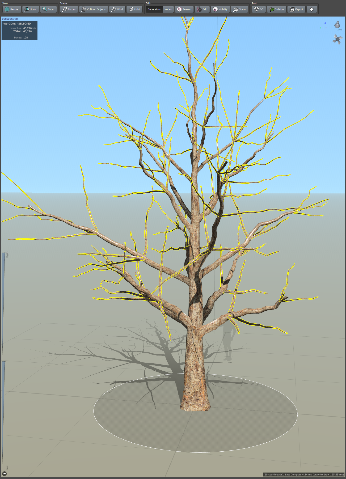19)나무줄기의 나뭇가지에서 frond(나뭇가지 cluster)와 leaf mesh(나뭇잎 무리와 나뭇가지 cluster)가 추가된것을 확인할수있습니다.