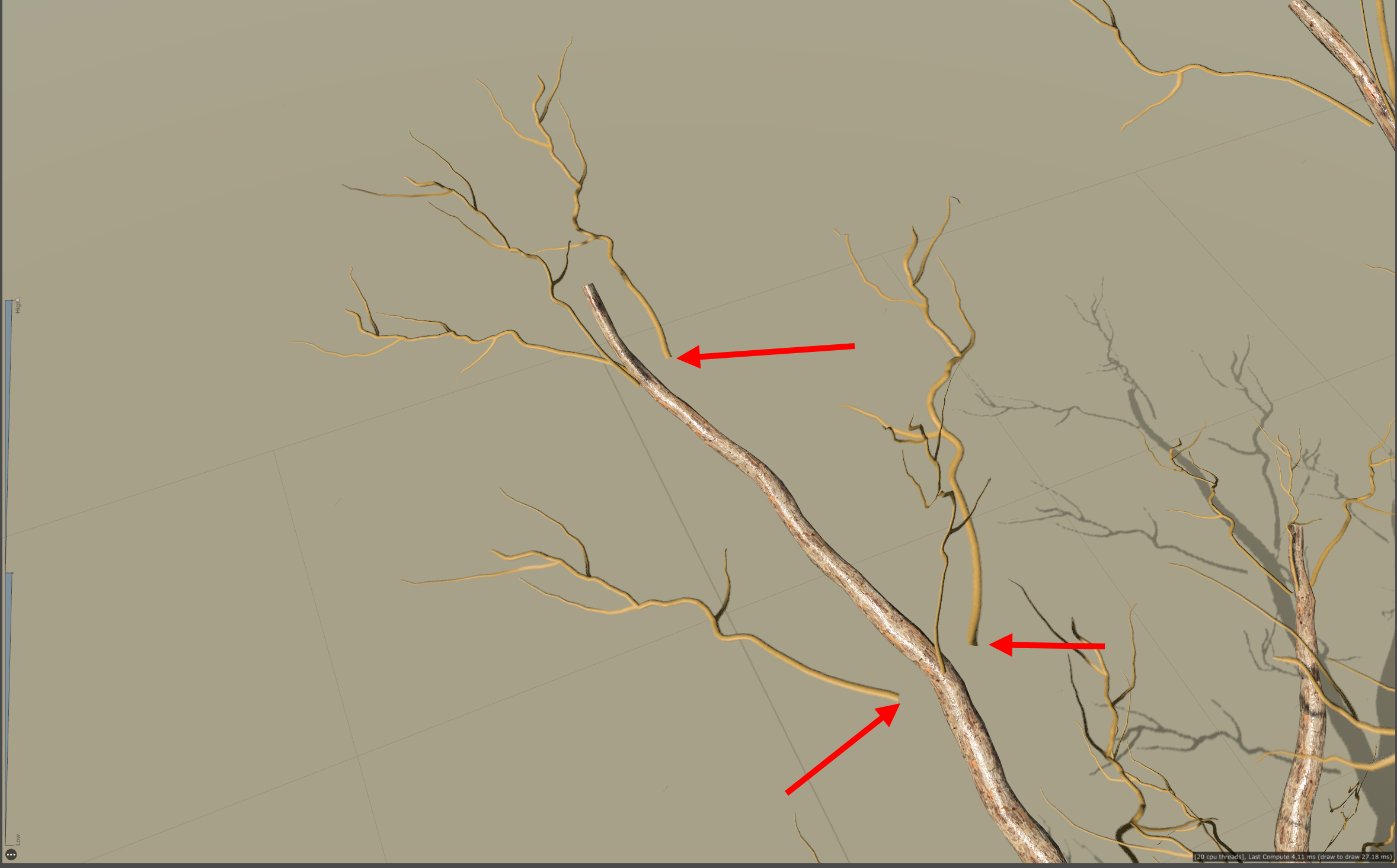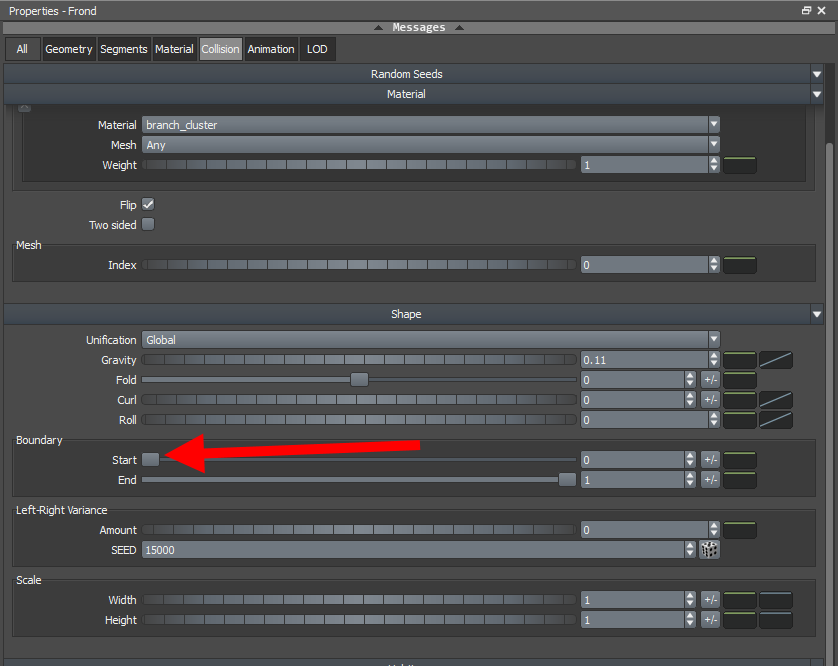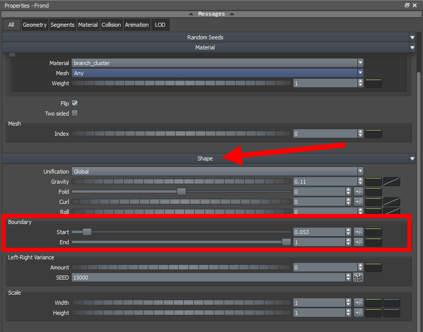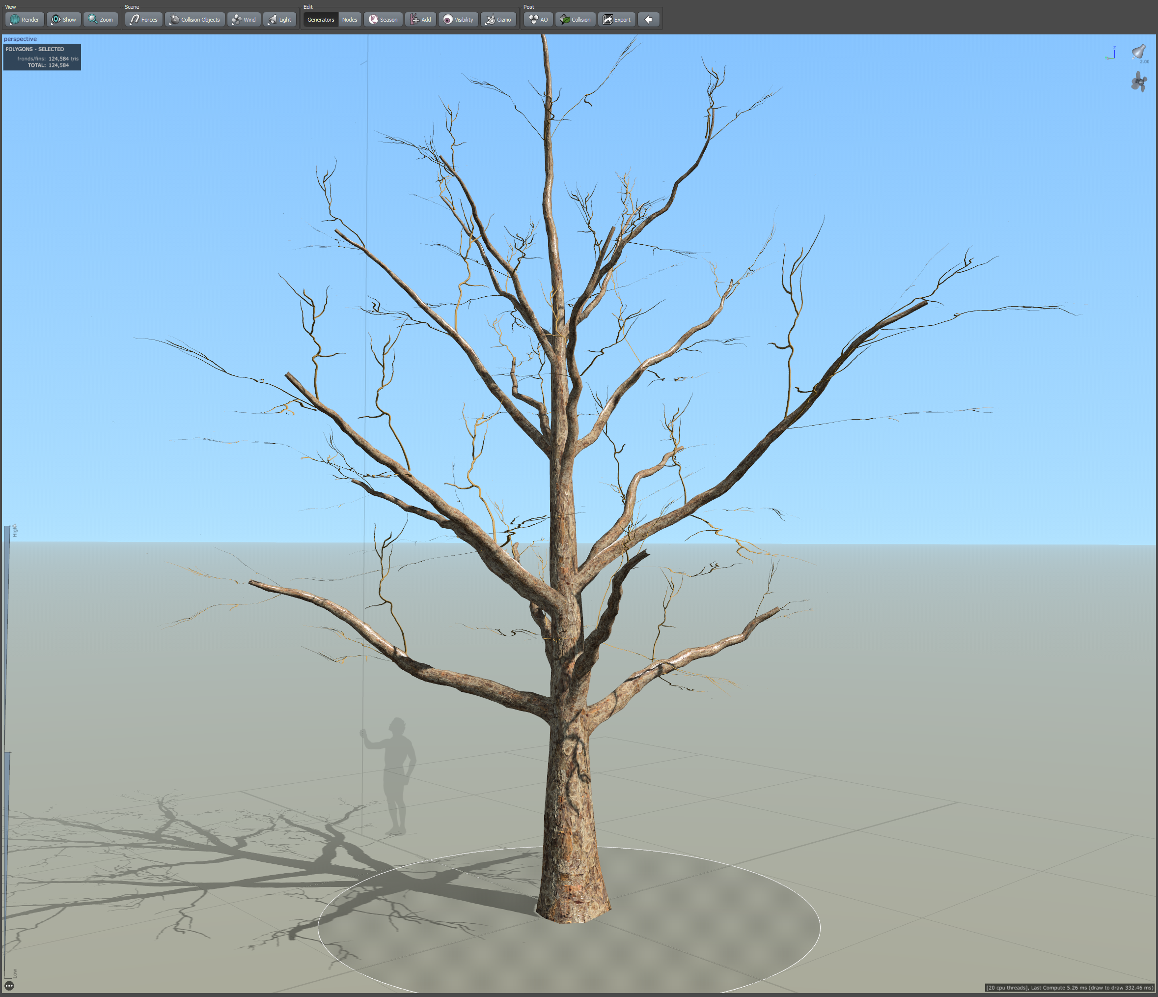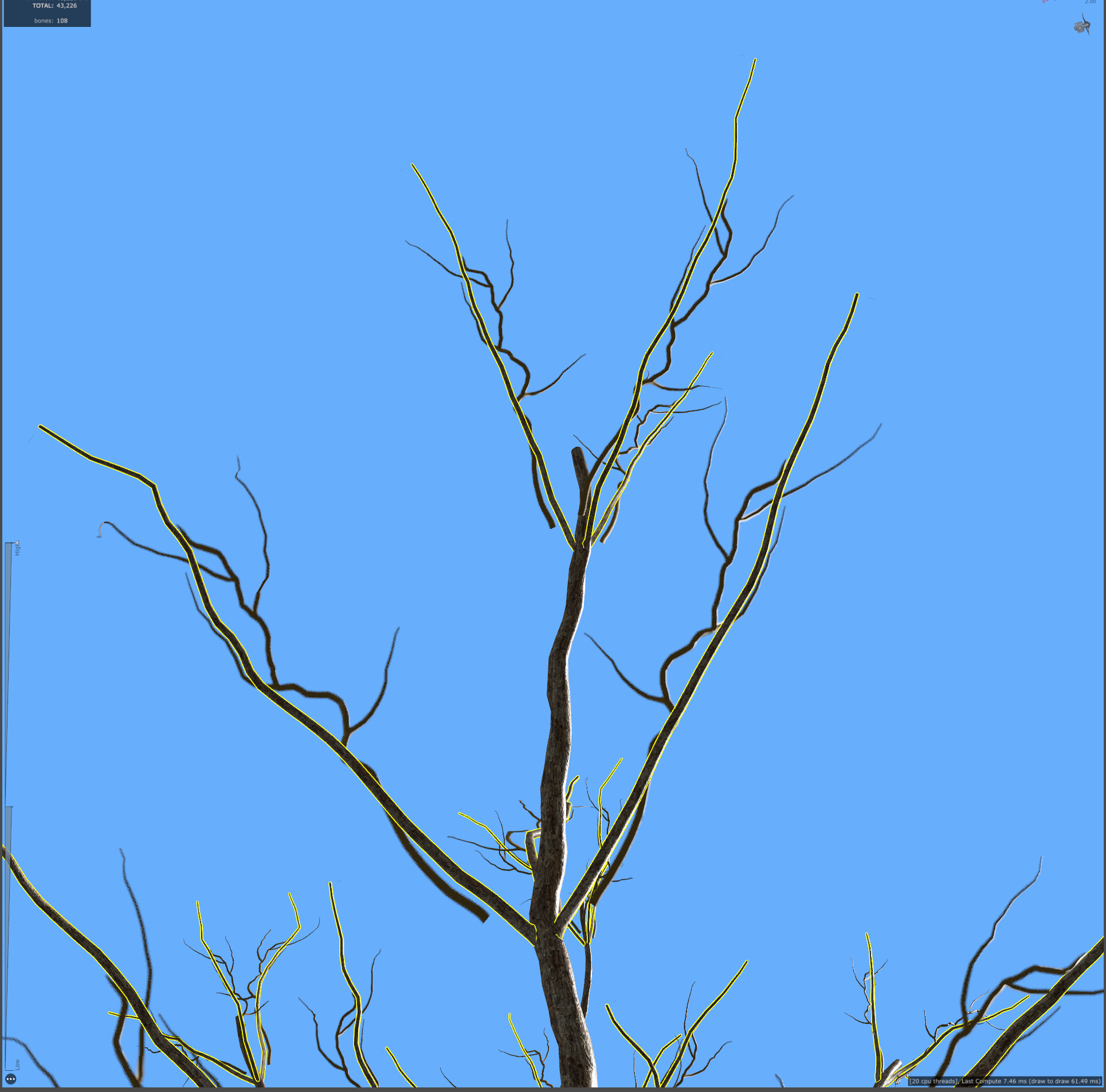 19)나무줄기의 나뭇가지에서 frond(나뭇가지 cluster)와 leaf mesh(나뭇잎 무리와 나뭇가지 cluster)가 추가된것을 확인할수있습니다.