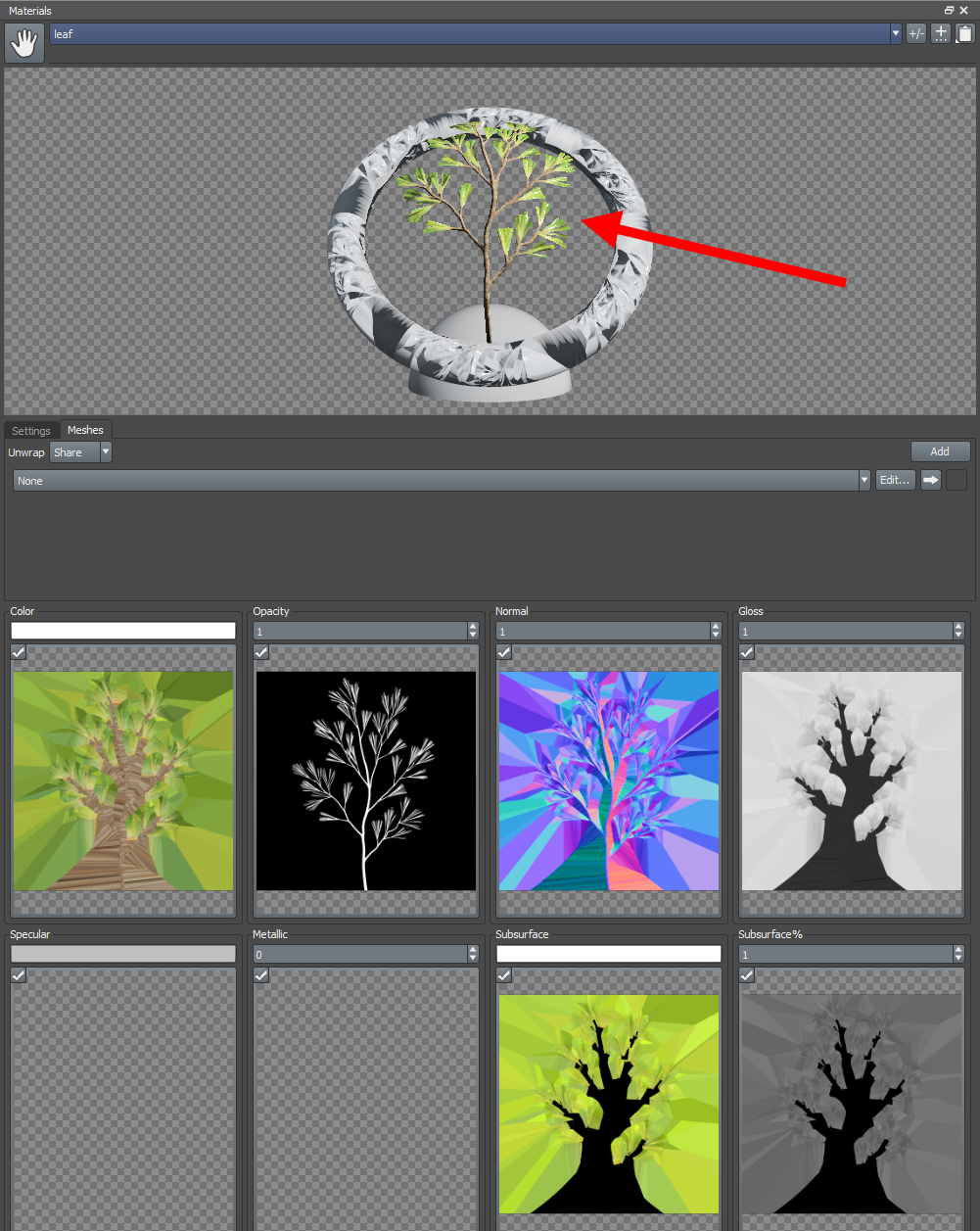 17)새로운 나뭇잎 재질을 생성합니다.