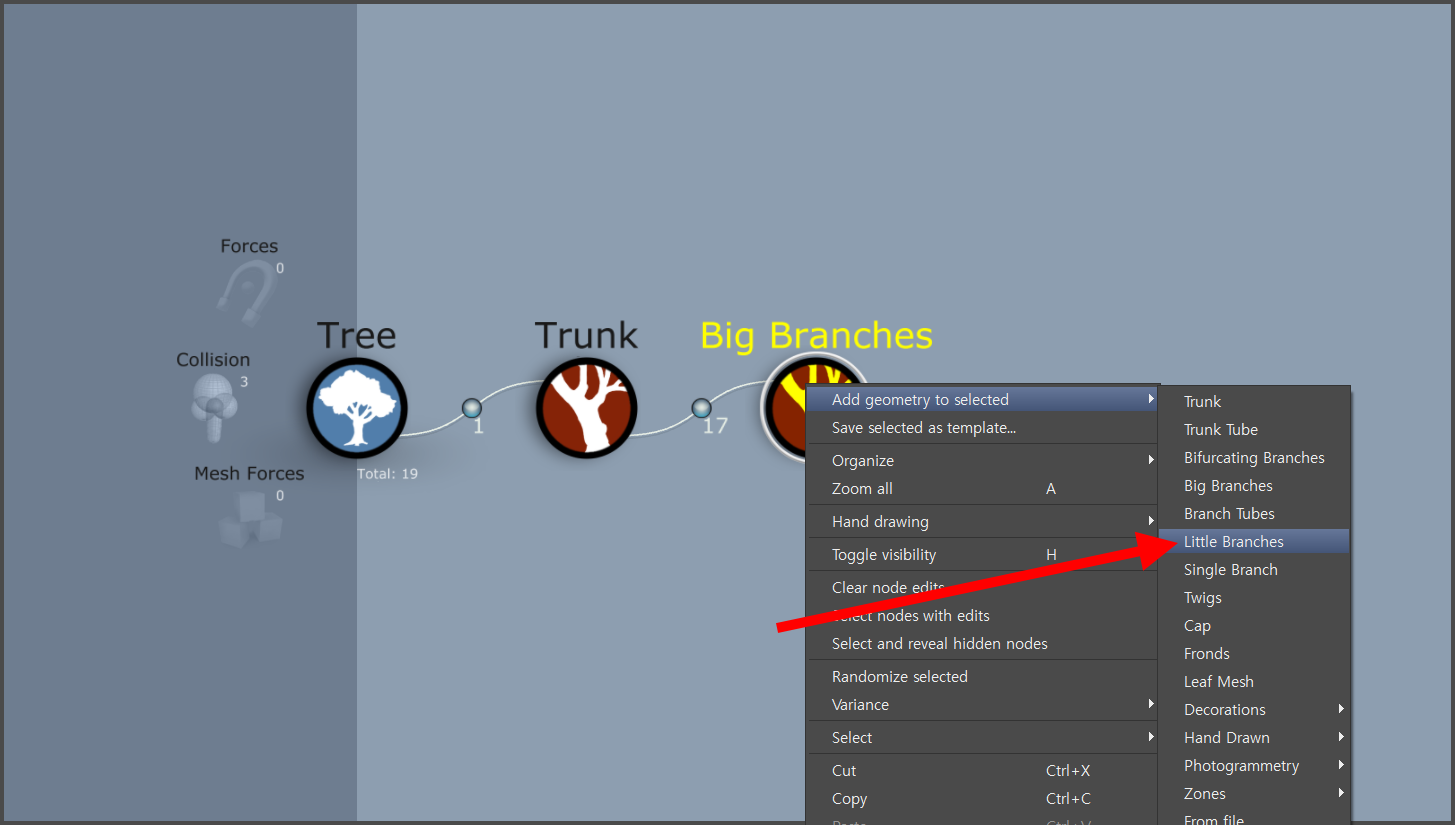 11)나뭇가지 노드(little branches)를 선택합니다.