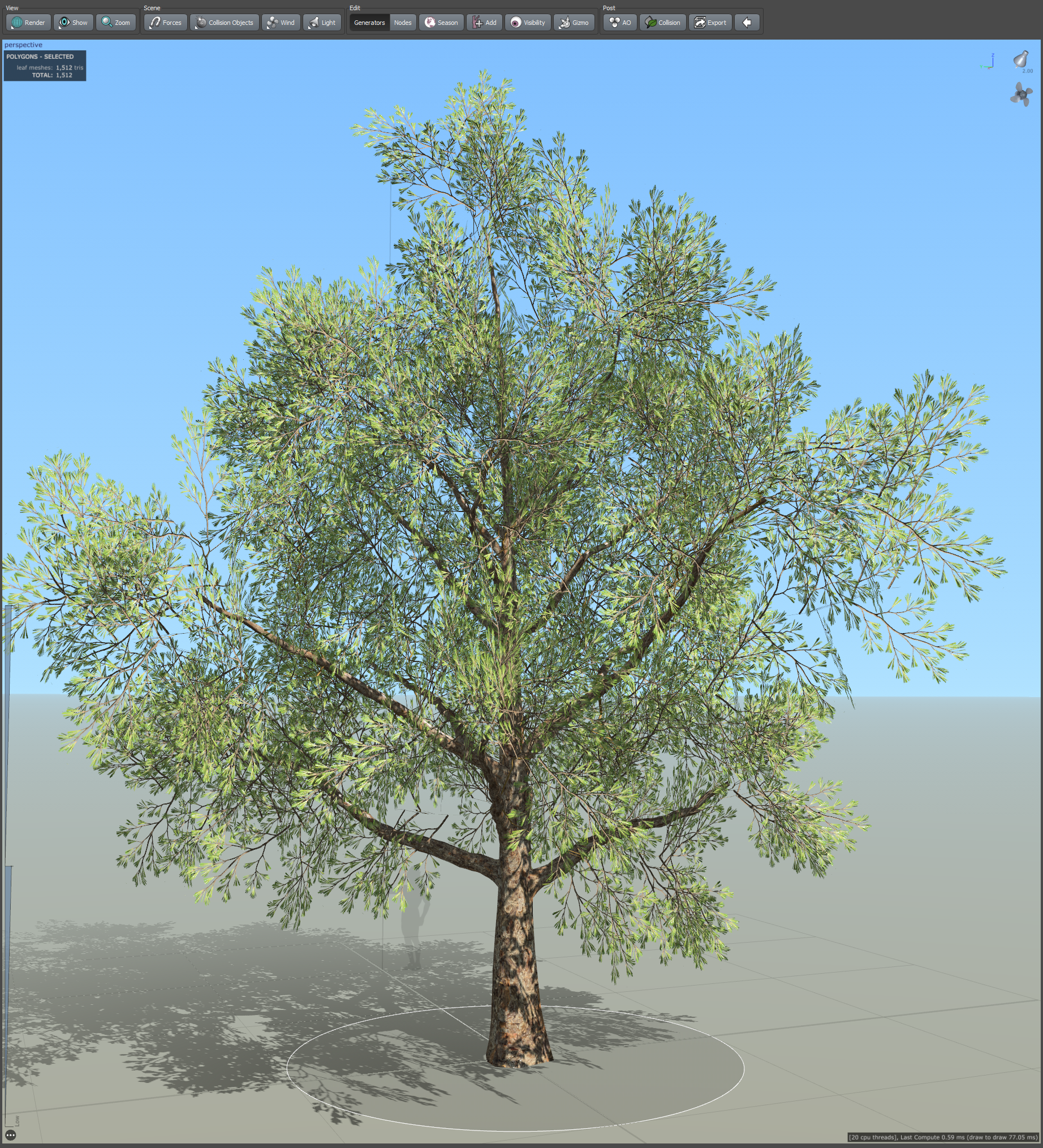 20)frond, leaf mesh의 크기를 조절하여 나무를 모델링합니다.