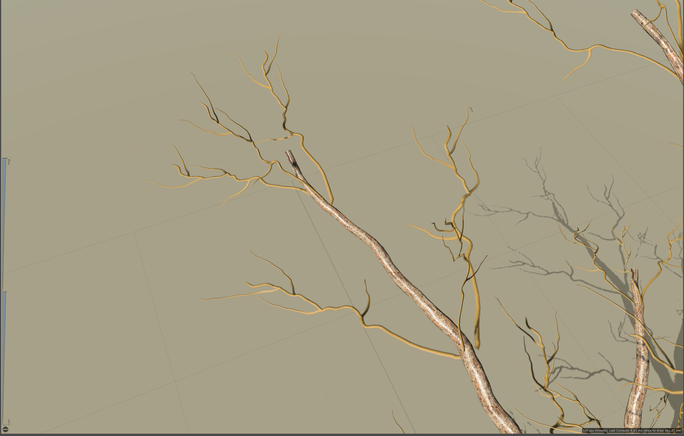 4)나무의 가지에 둘레가 작은 가지가 추가 생성된것을 확인할수있습니다.