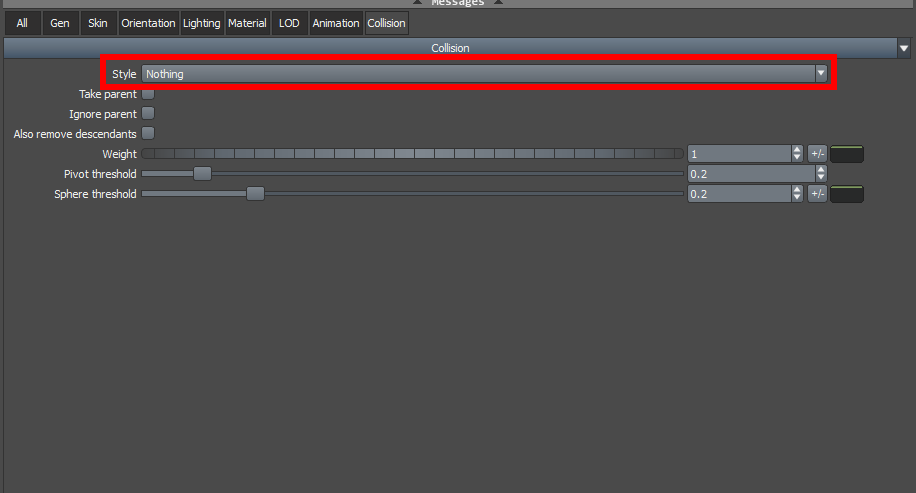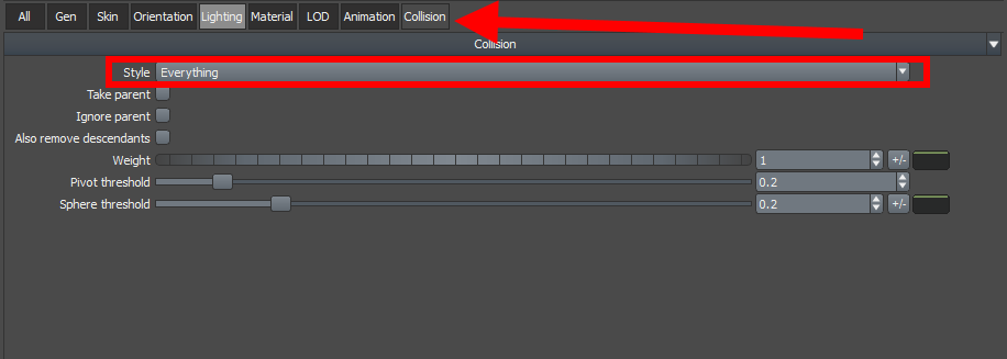 2)collision의 style이 everthing으로 설정되어있는것을 확인할수있습니다.