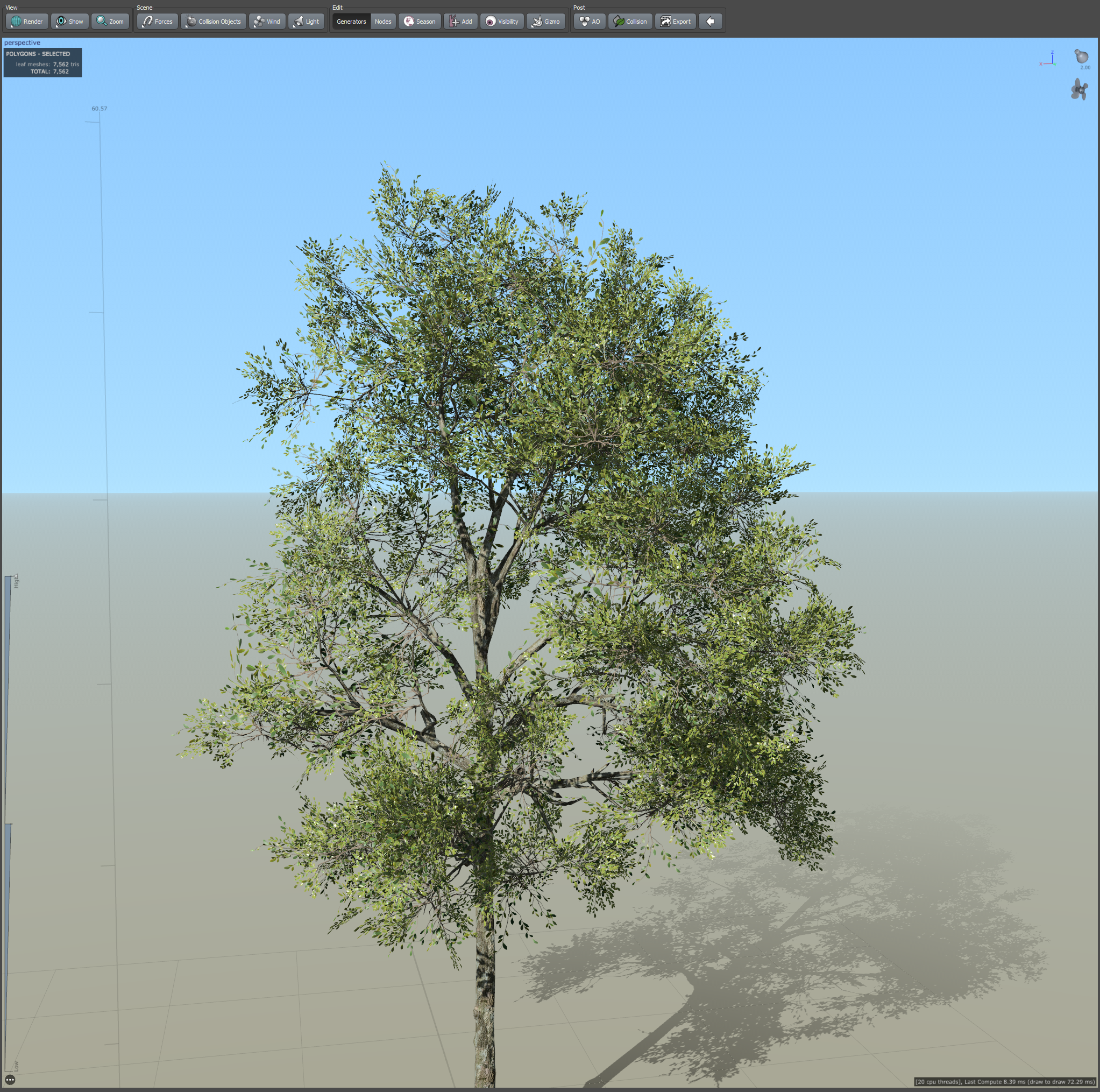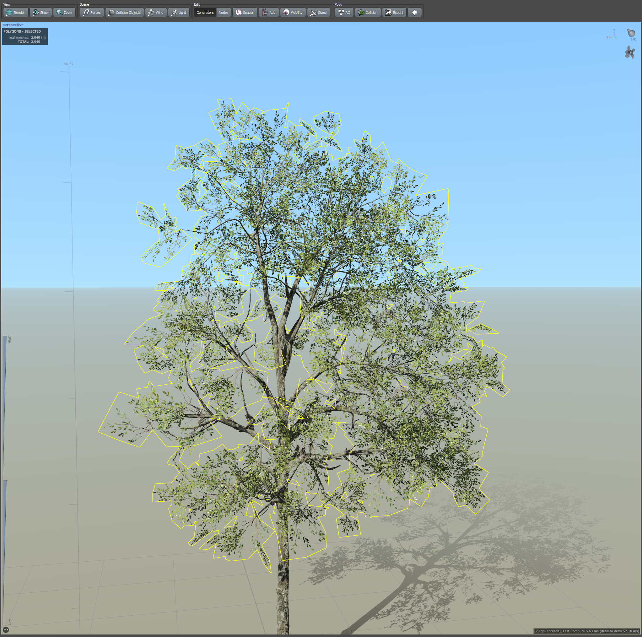 절차적으로 생성된 나무 모델의 잎이 서로 충돌 또는 교차하는 경우 이것을 감지하여 충돌하는 잎을 제거하는 기능을 활성화 또는 비활성화할수있습니다.