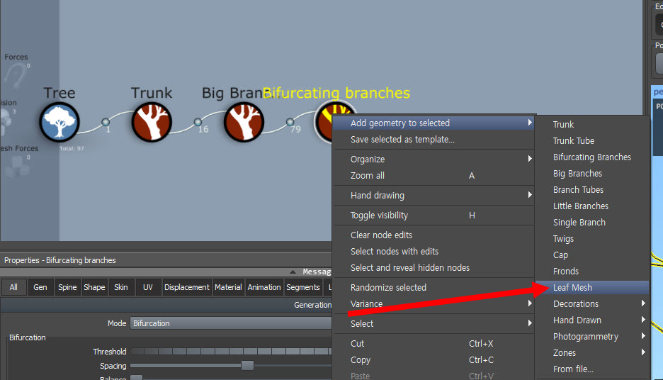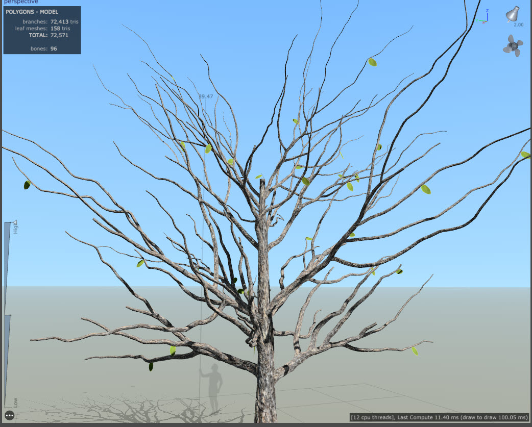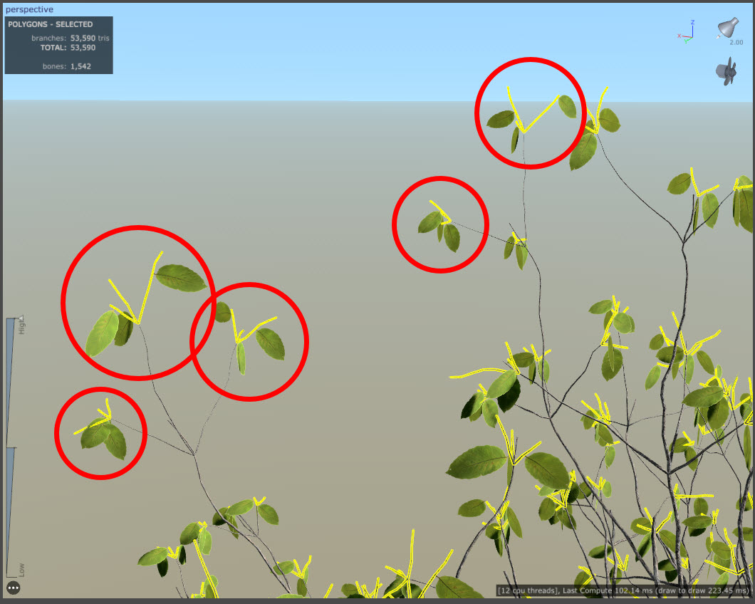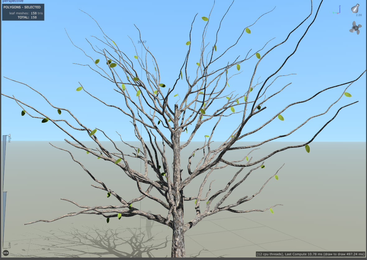 스피드트리(speedtree)에서 나뭇잎(leaf mesh) 개수, 크기, 기타