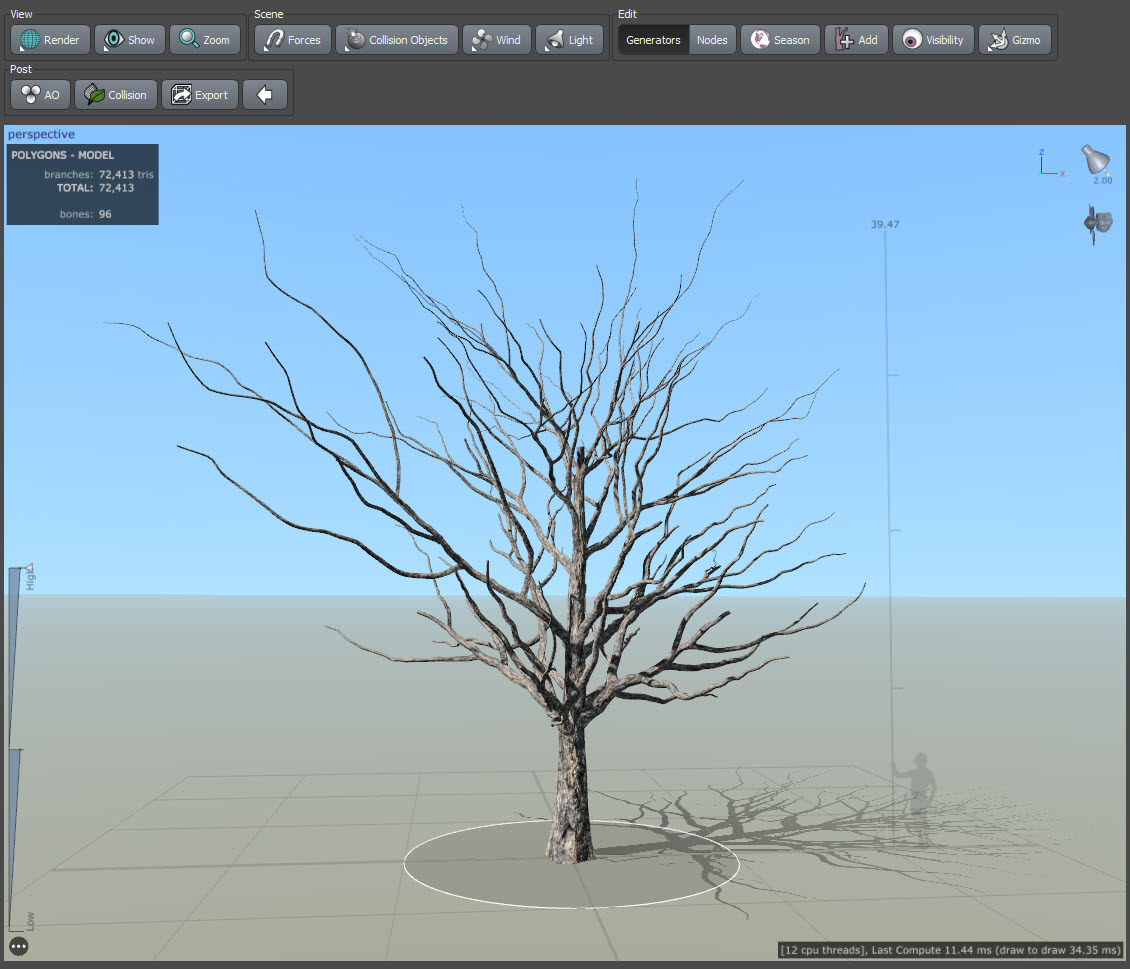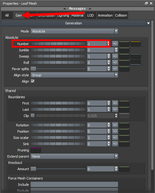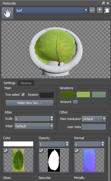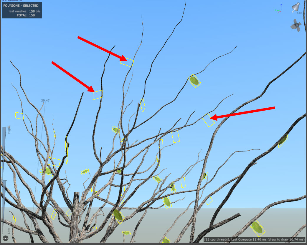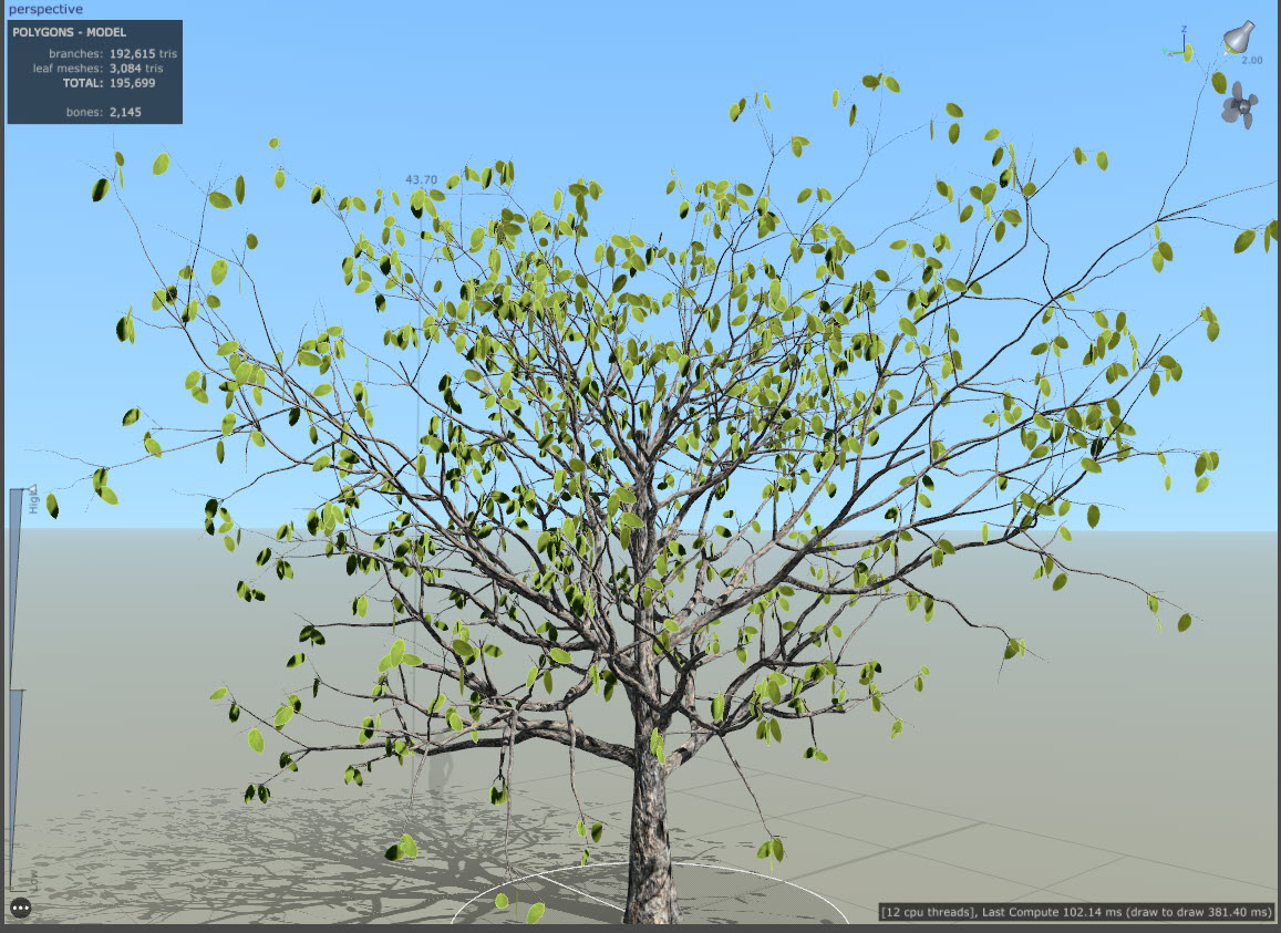 스피드트리(speedtree)에서 나뭇잎(leaf mesh) 개수, 크기, 기타