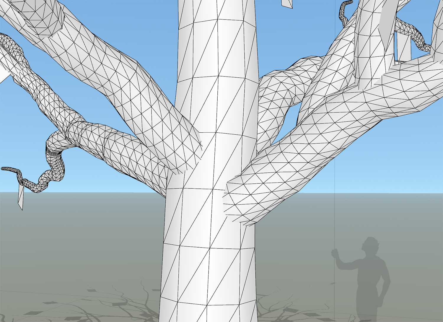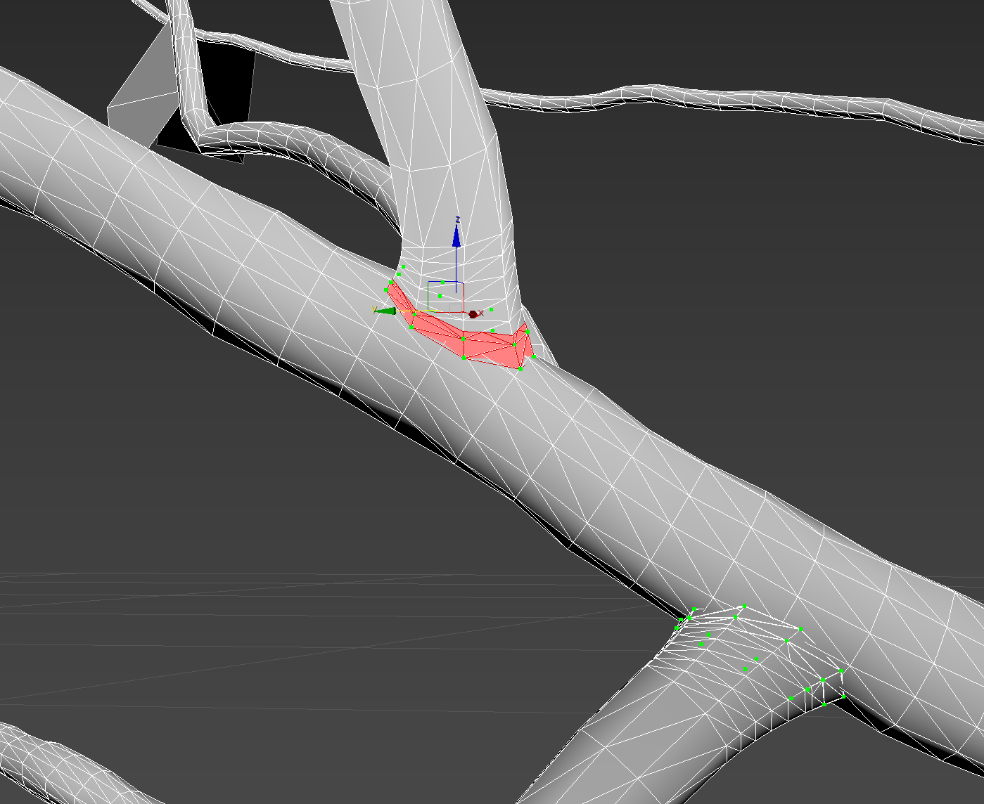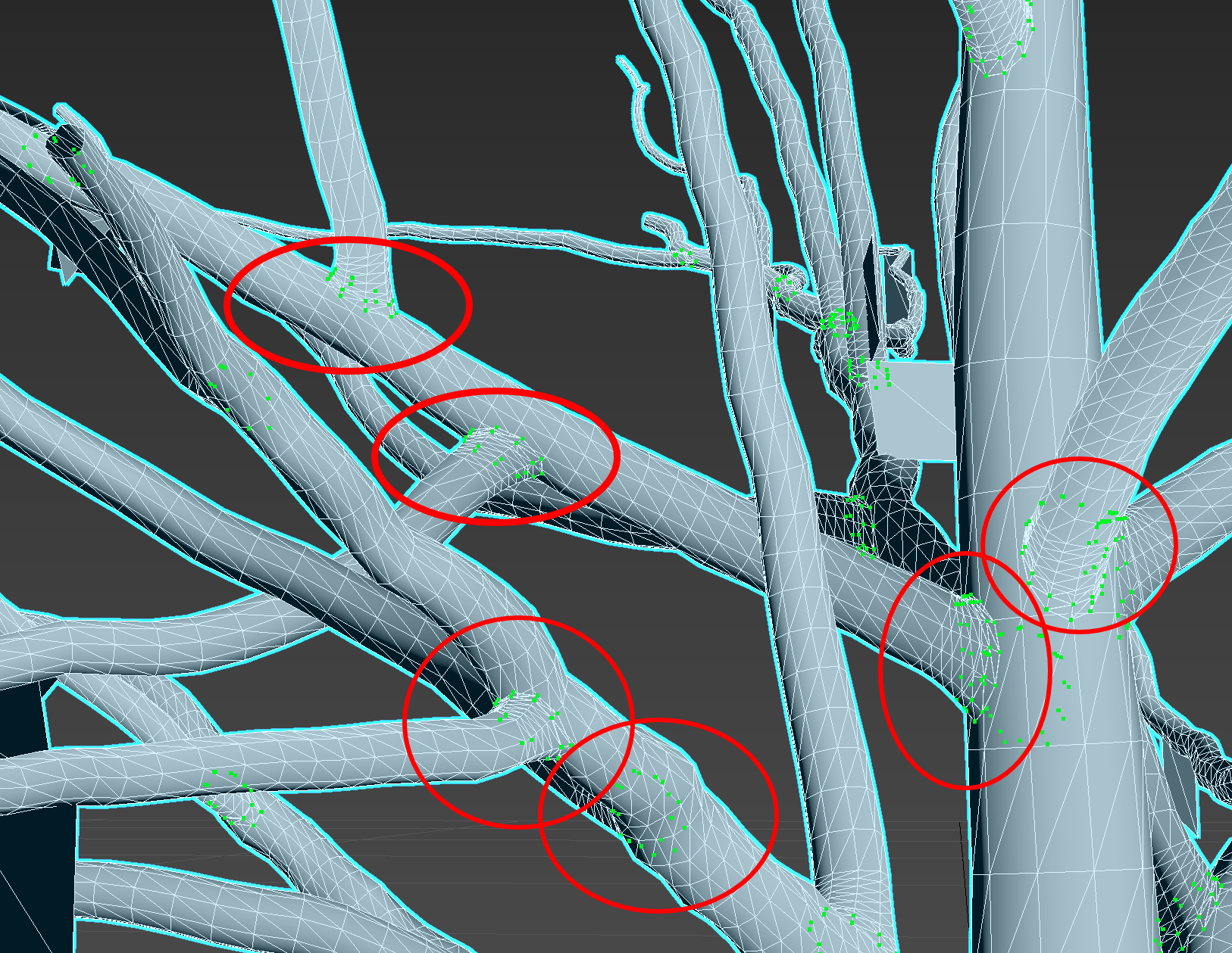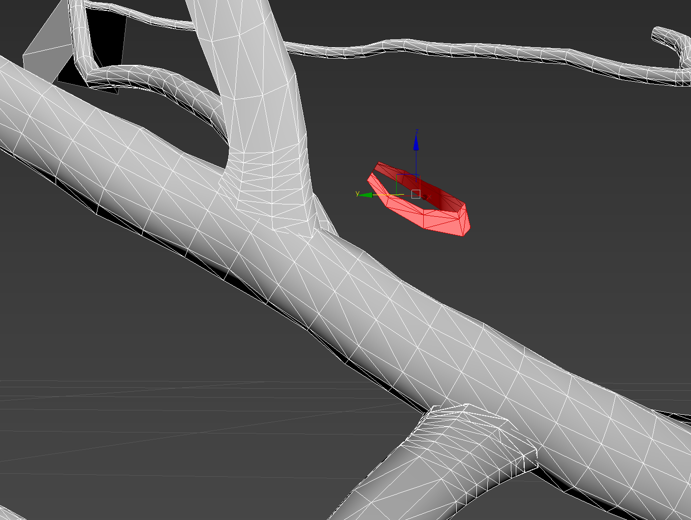 10)나뭇가지의 아래 부분에 추가적으로 존재하는 메시가 제거된것을 확인할수있습니다.