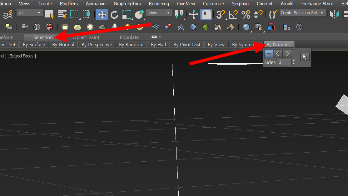 17)모델의 모든 삼각형(sides-3)을 선택한것을 확인할수있습니다.