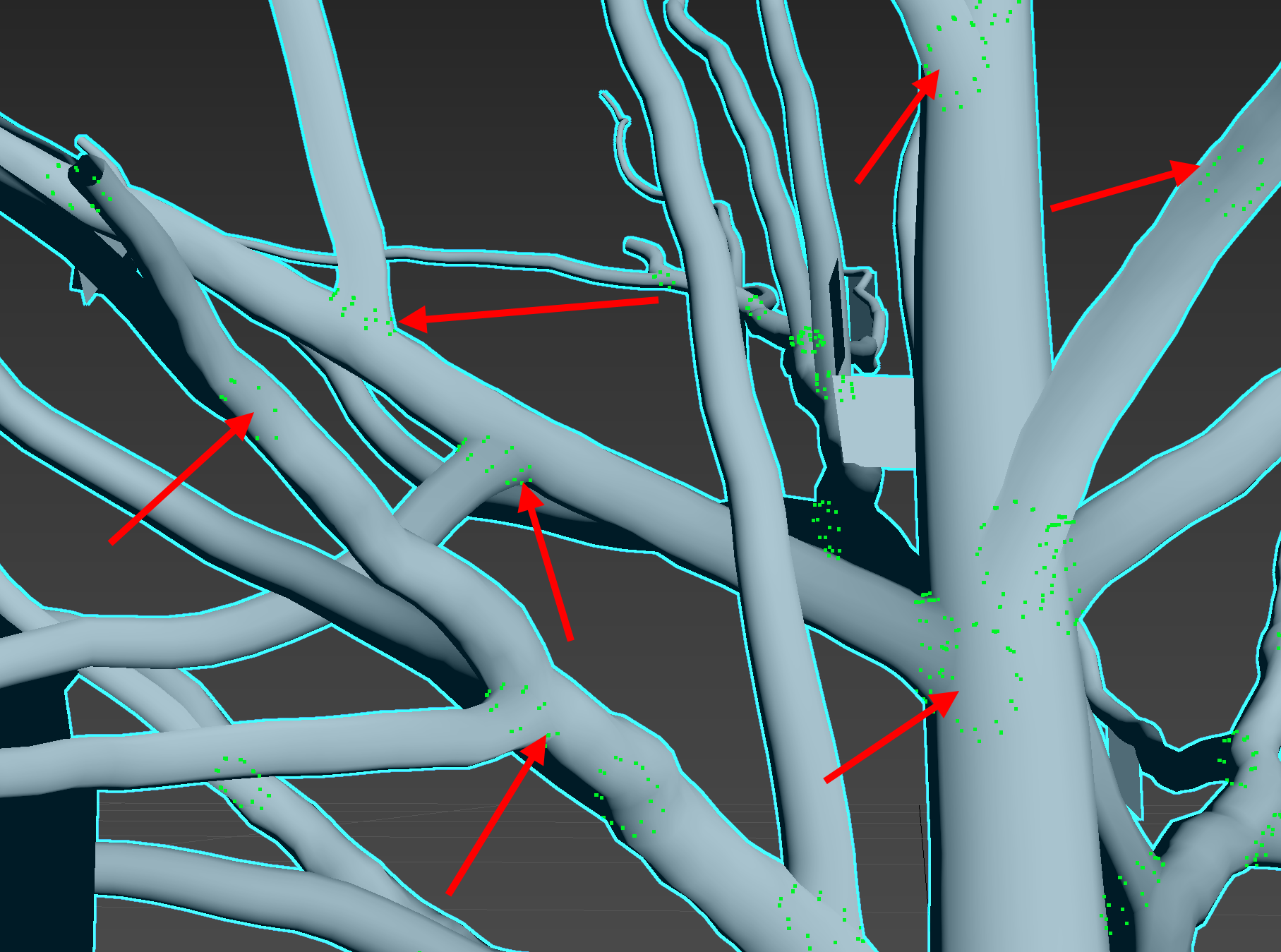 Branch Intersections This section describes how to effectively mask the intersections between branch levels. Overview The heart of any tree model is the network of branches that comprise the shape of the tree, from the trunk up to tiny twigs that sprout le
