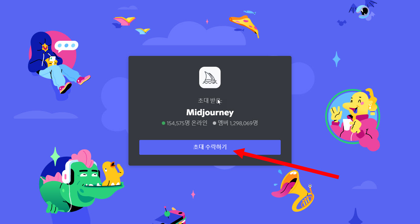 2)디스코드(discord)에서 사용자 로그인하고 midjourney의 초대 수락하기를 클릭한다.