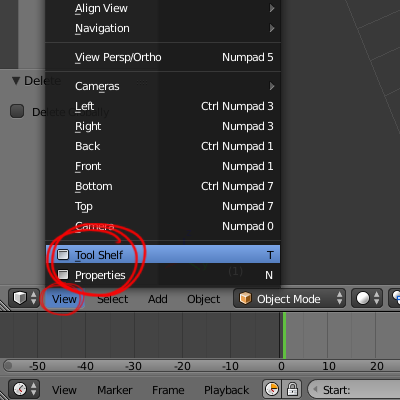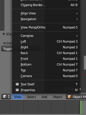 6)tool shelf와 properties는 하단의 view 메뉴에서 체크하여 표시할수있습니다(단축키 T,N)