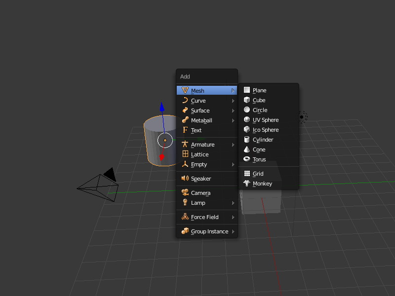 10)3D view에서 바로가기 메뉴를 사용하여 오브젝트를 생성할수있습니다(단축키 shift+a)