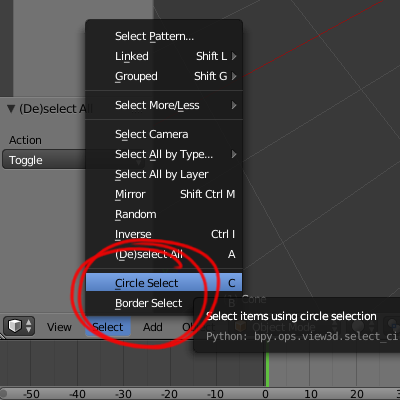 6)원형 선택과 테두리 선택을(circle select, border select) 사용하여 선택영역의 오브젝트를 선택할수있습니다(단축키 c, b)