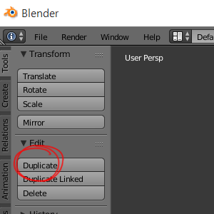4)tool shelf의 tools탭에서 edit의 duplicate는 오브젝트를 복제합니다(단축키 shift+d)