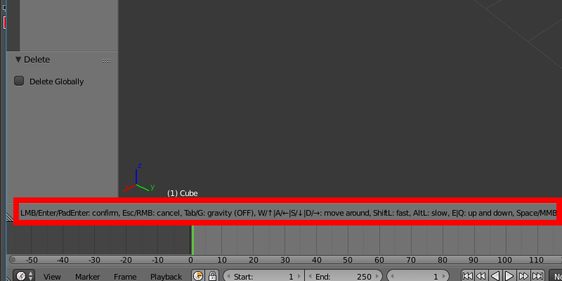 4)네비게이션을 사용할때 3d view의 하단에서 사용팁 및 단축키를 확인할수있습니다.