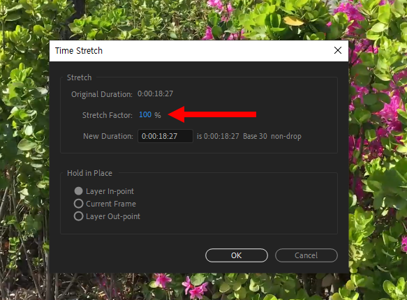 time stretch를 사용하여 동영상 시퀀스의 시간을 늘이고 프레임레이트 차이 확인하기