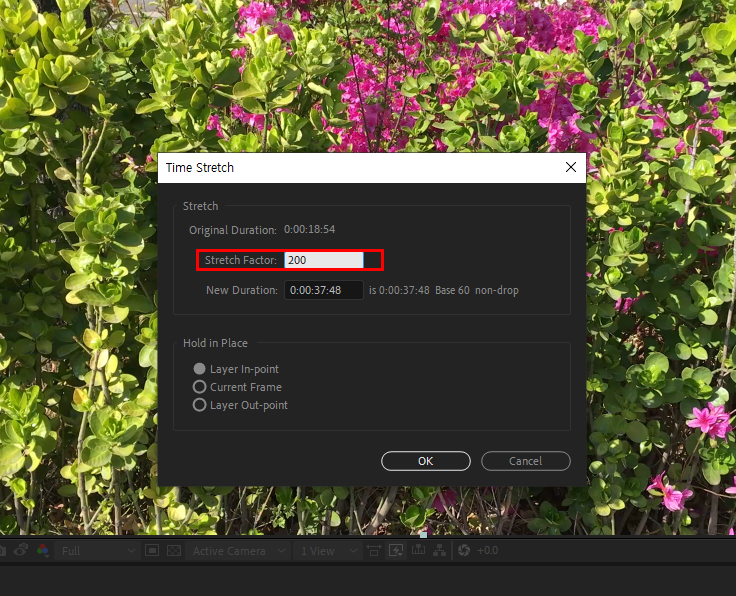 8)동영상의 stretch factor에 두배의 수치를(200) 입력합니다.