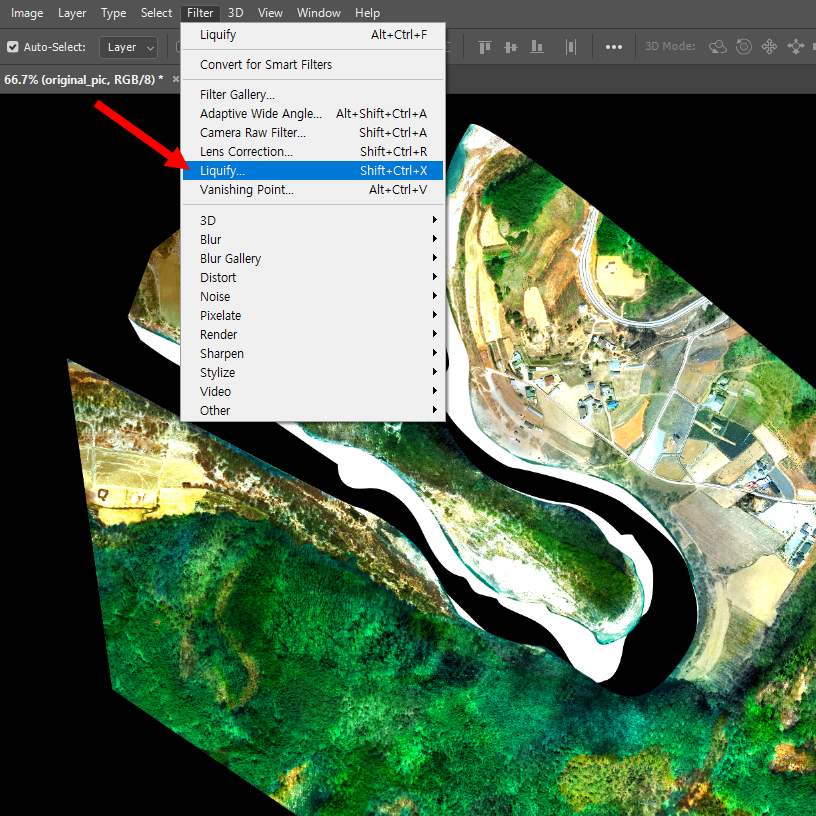 3)수정할 이미지를 선택하고 상단의 filter에서 liquify로 이동합니다.