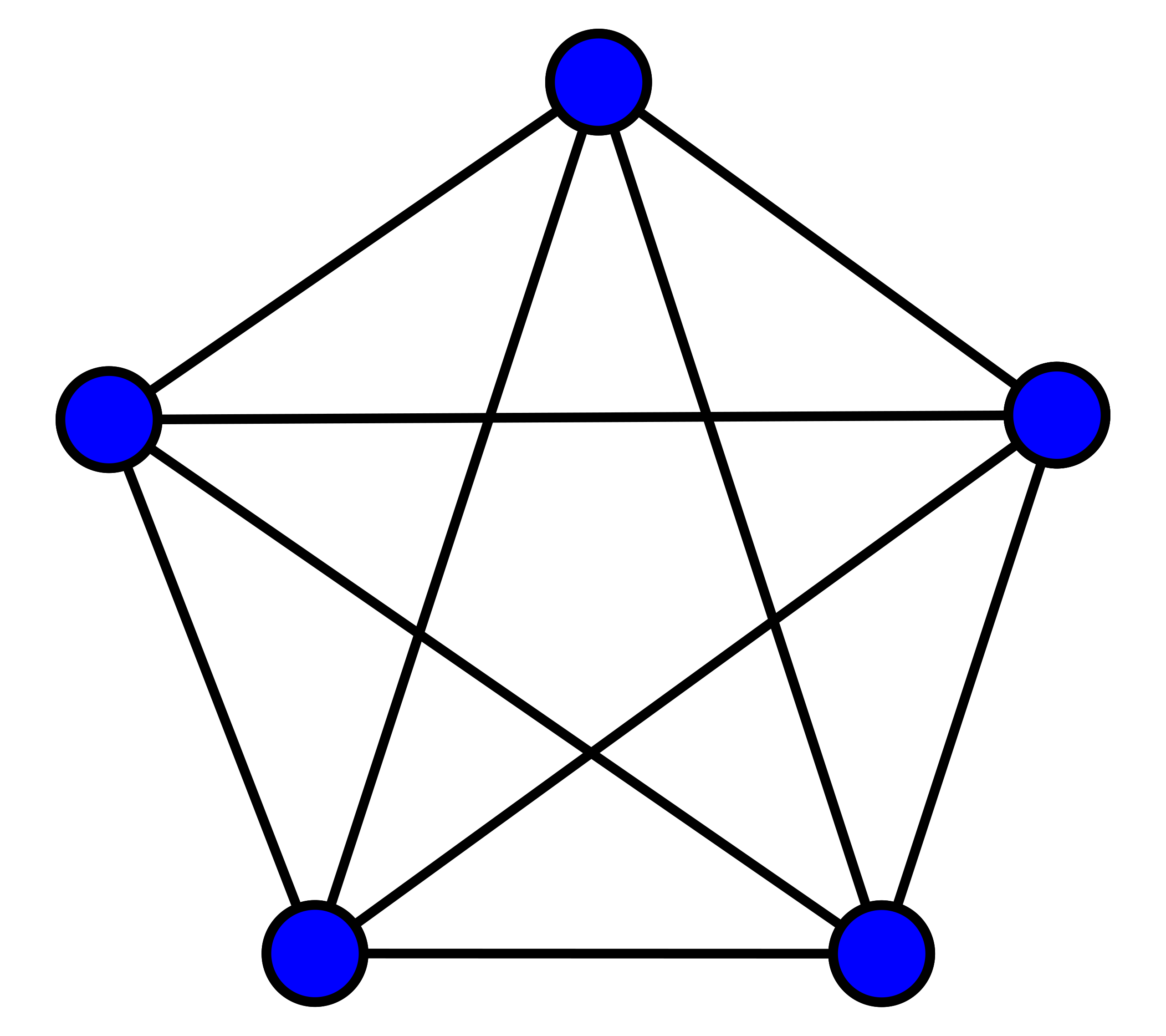 모든 정점이 서로 직접 연결된 형태로 각 정점은 다른 모든 정점으로 가는 모서리를 가지고 있습니다.