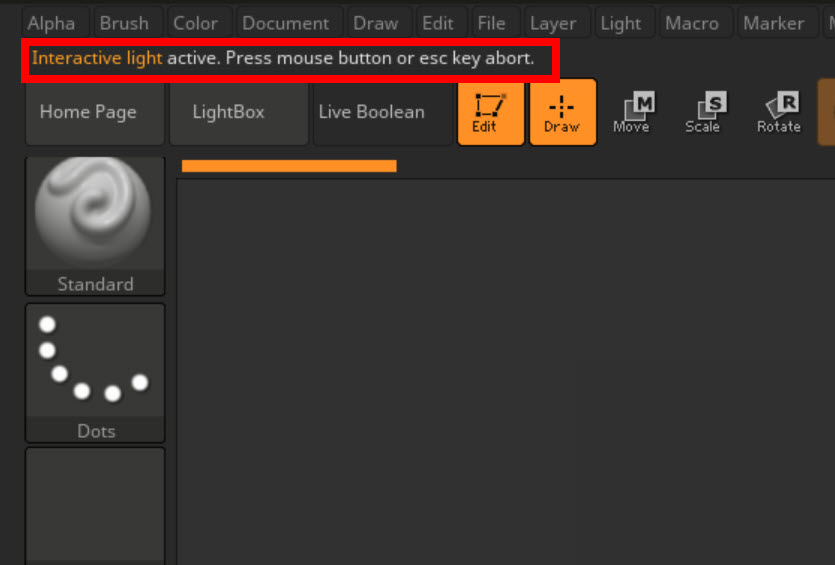 지브러시(zbrush)에서 실시간 조명 효과 사용하기(interactive light)