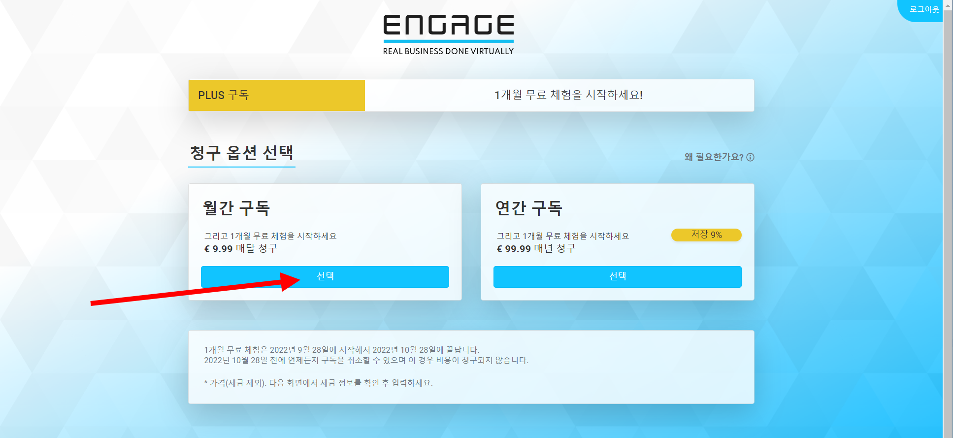 2)청구 옵션을 선택합니다. 월간 구독은 1개월 무료 체험 이후 매달 금액이 청구됩니다.