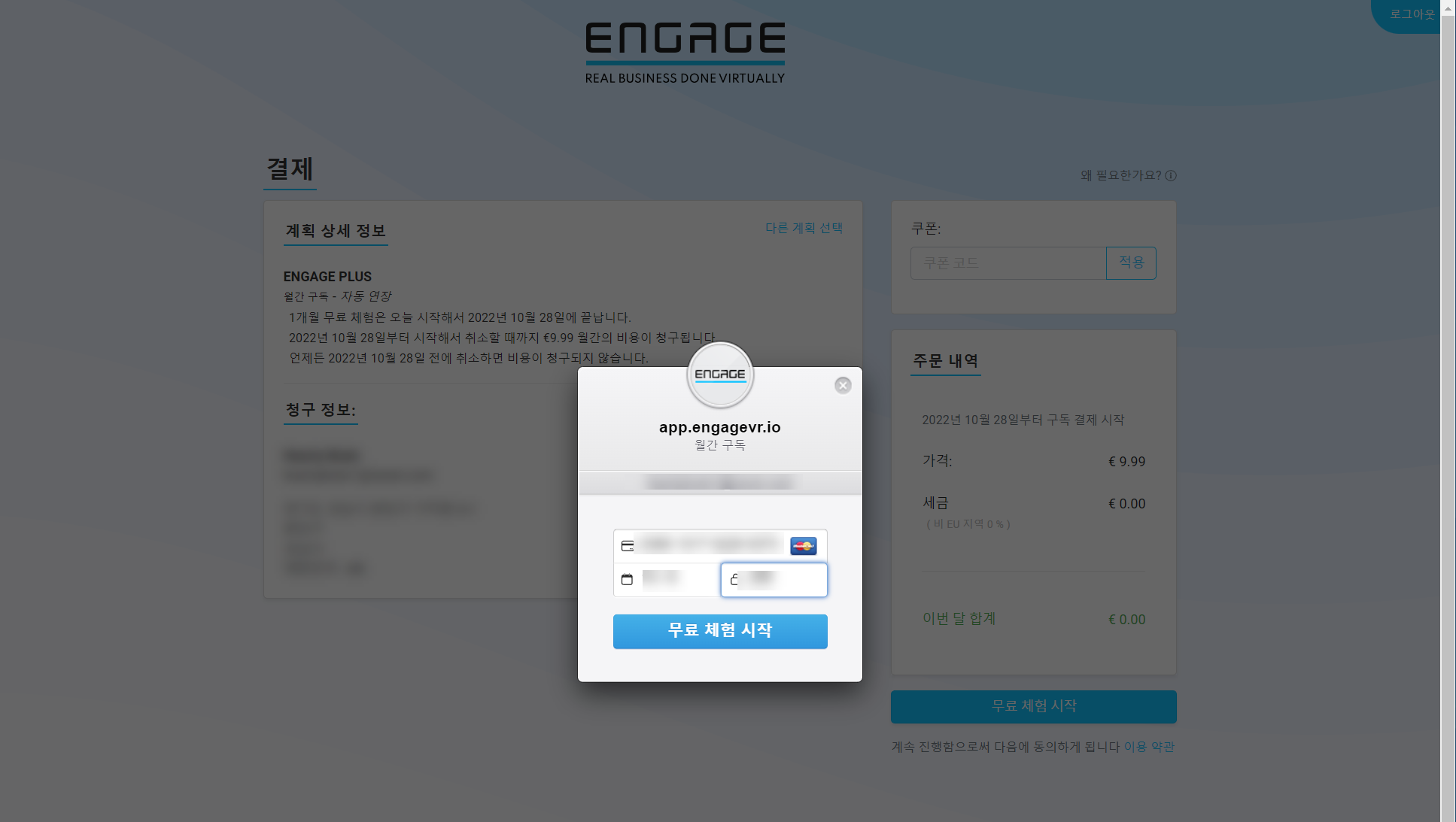 4)결제정보를 입력하고 무료 체험 시작하기를 클릭합니다.