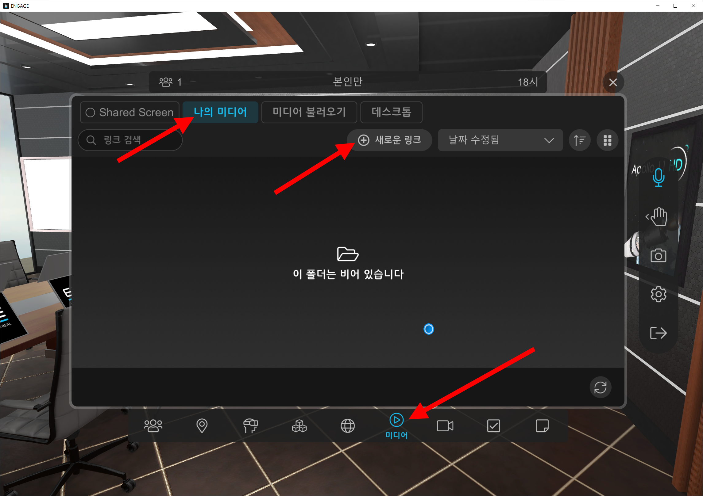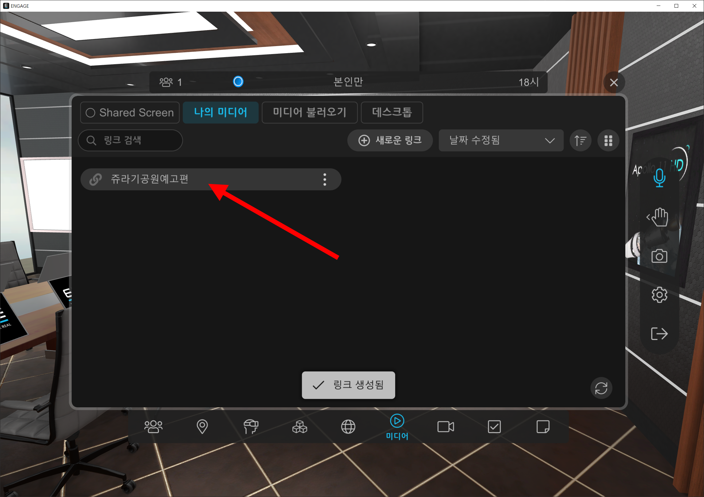 14)미디어 메뉴를 선택하고 나의 미디어에서 새로운 링크를 클릭합니다.