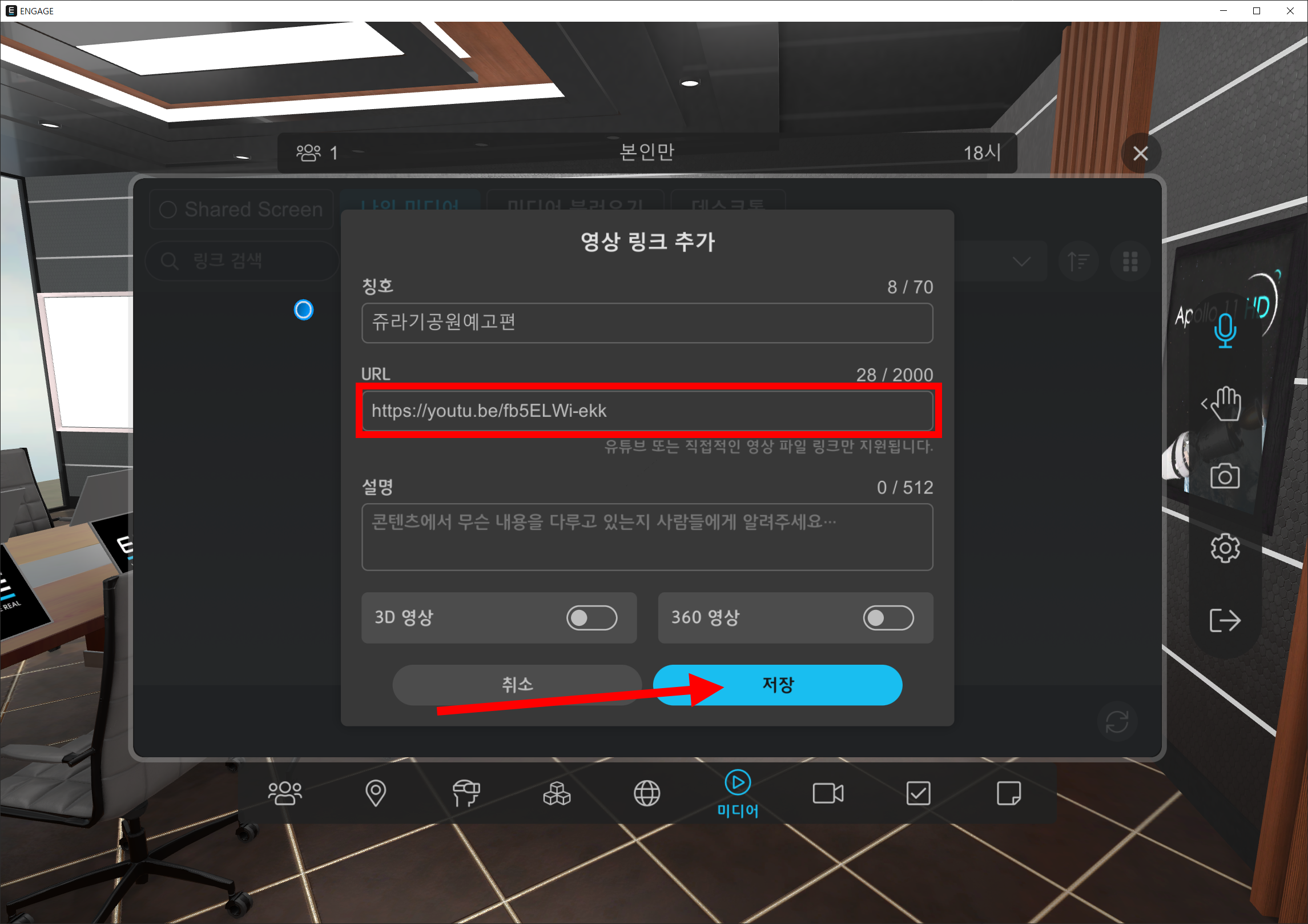 인게이지(engage) 기본 사용법 - 세션 시작, 캐릭터 컨트롤, 오브젝트 추가(IFX), 동영상 재생